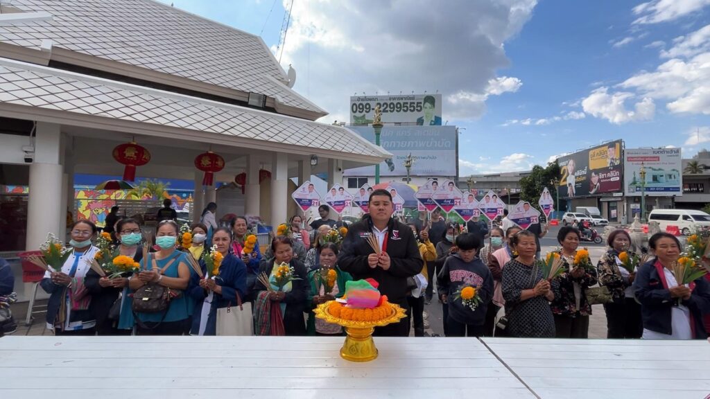 นายชลกฤต สาตราคม ผู้สมัคร สส.แบบบัญชีรายชื่อ พรรคไทรวมพลัง พร้อมคณะผู้ช่วยหาเสียง ลงพื้นที่สักการะศาลหลักเมืองขอนแก่น เพื่อความเป็นสิริมงคลในการลงสนามเลือกตั้ง พร้อมขอแรงสนับสนุนจากคนขอนแก่นเลือกพรรคไทรวมพลัง ในบัตรเลือกตั้งแบบบัญชีรายชื่อ