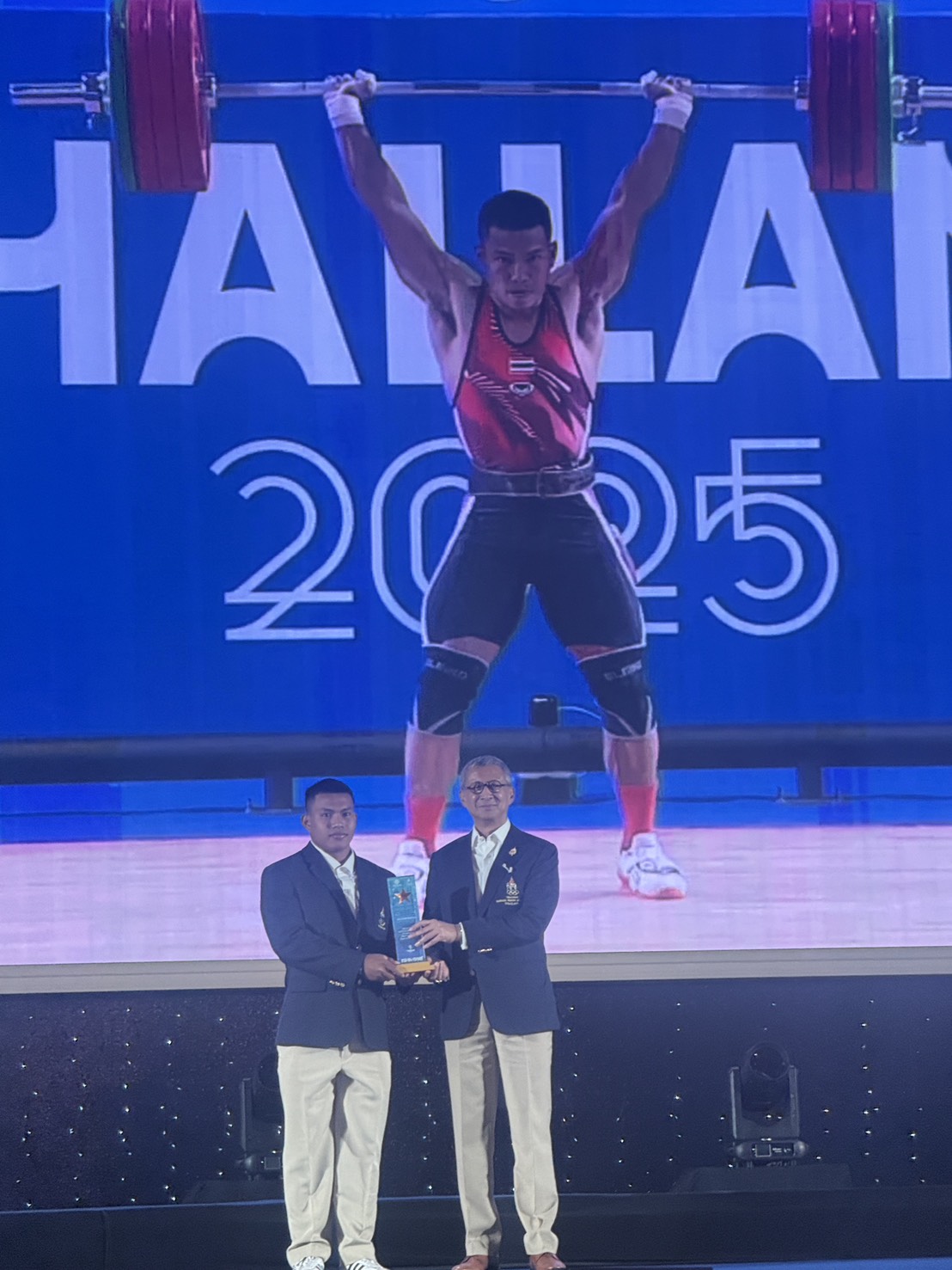 ขณะเดียวกัน พลเอก วิสุทธิ์ เดชสกุล เลขาธิการสมาคมกีฬายกน้ำหนักสมัครเล่นแห่งประเทศไทย เป็นผู้แทนสมาคมฯ รับของที่ระลึกอันเป็นสัญลักษณ์เกียรติประวัติซีเกมส์