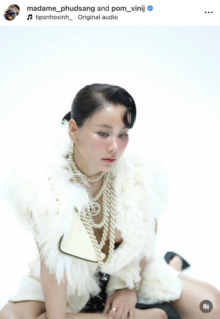 “My make up มหารานีโซ๊ะมาก ปรับเปลี่ยนฮวงจุ้ยโยกย้ายฟ้าดิน ไม่เหลือเค้าโครงเดิมเลย ให้กลายเป็นเบ้าหน้าฟ้าประทาน @madame_phudsang”
