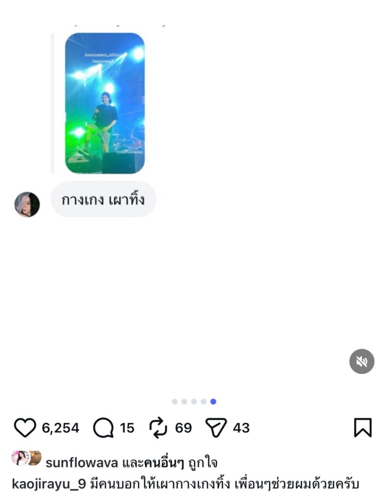โดยล่าสุดหนุ่มเก้ายังเผยภาพลุคสุดเท่บนเวทีคอนเสิร์ตขณะร้องเพลง แต่งานนี้ไม่วางคนจะโฟกัสที่กางเกง และถุงเท้า ลายตารางสุดเท่ จนทำให้หลายคนเข้ามาแซว รวมไปถึงหวานใจของหนุ่มเก้าอย่างสาว “วี วิโอเลต วอเทียร์” ที่ตอบกลับในสตอรี่ว่า “กางเกง เผาทิ้ง”
