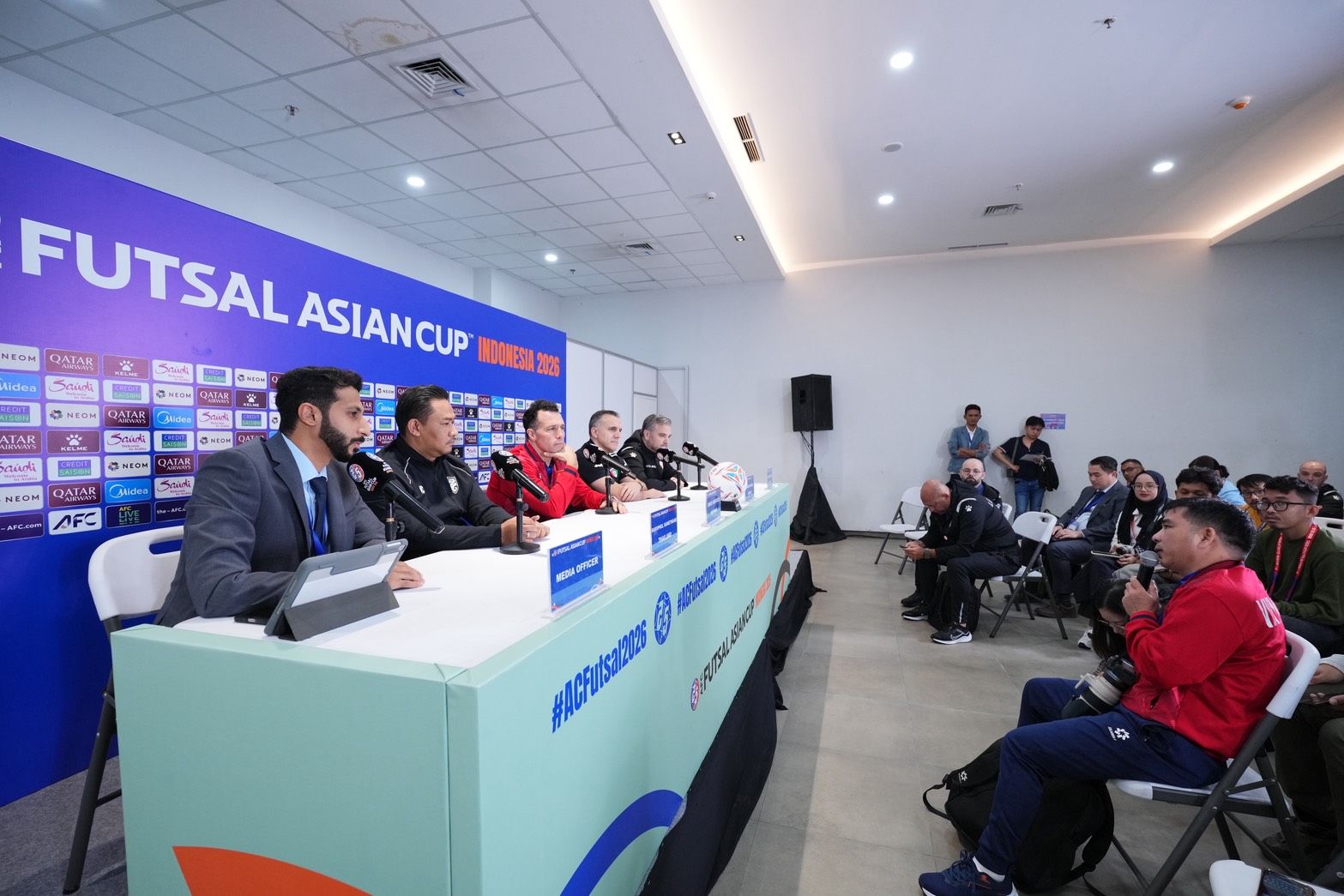 วันที่ 26 มกราคม 2569 เวลา 11.00 น. ณ ห้องแถลงข่าว อินโดนีเซีย อารีนา สมาพันธ์ฟุตบอลแห่งเอเชีย หรือ เอเอฟซี จัดงานแถลงข่าวก่อนการแข่งขันฟุตซอลชิงแชมป์เอเชีย 2026 รอบสุดท้าย (AFC Futsal Asian Cup 2026) ของกลุ่มบี