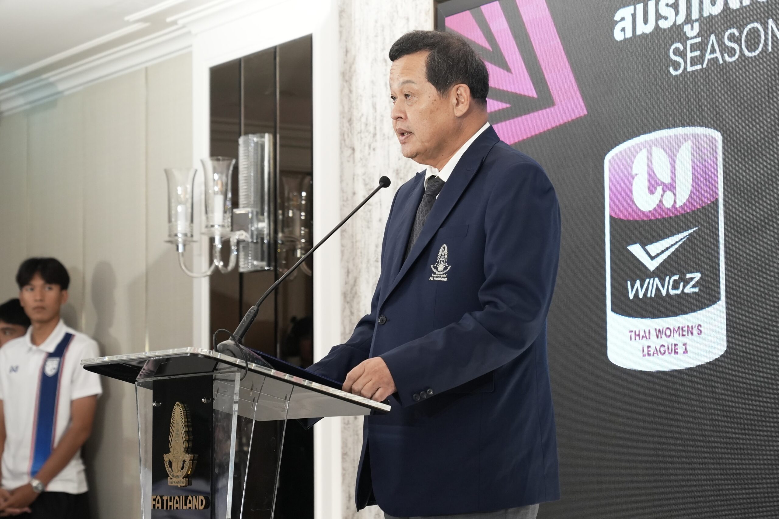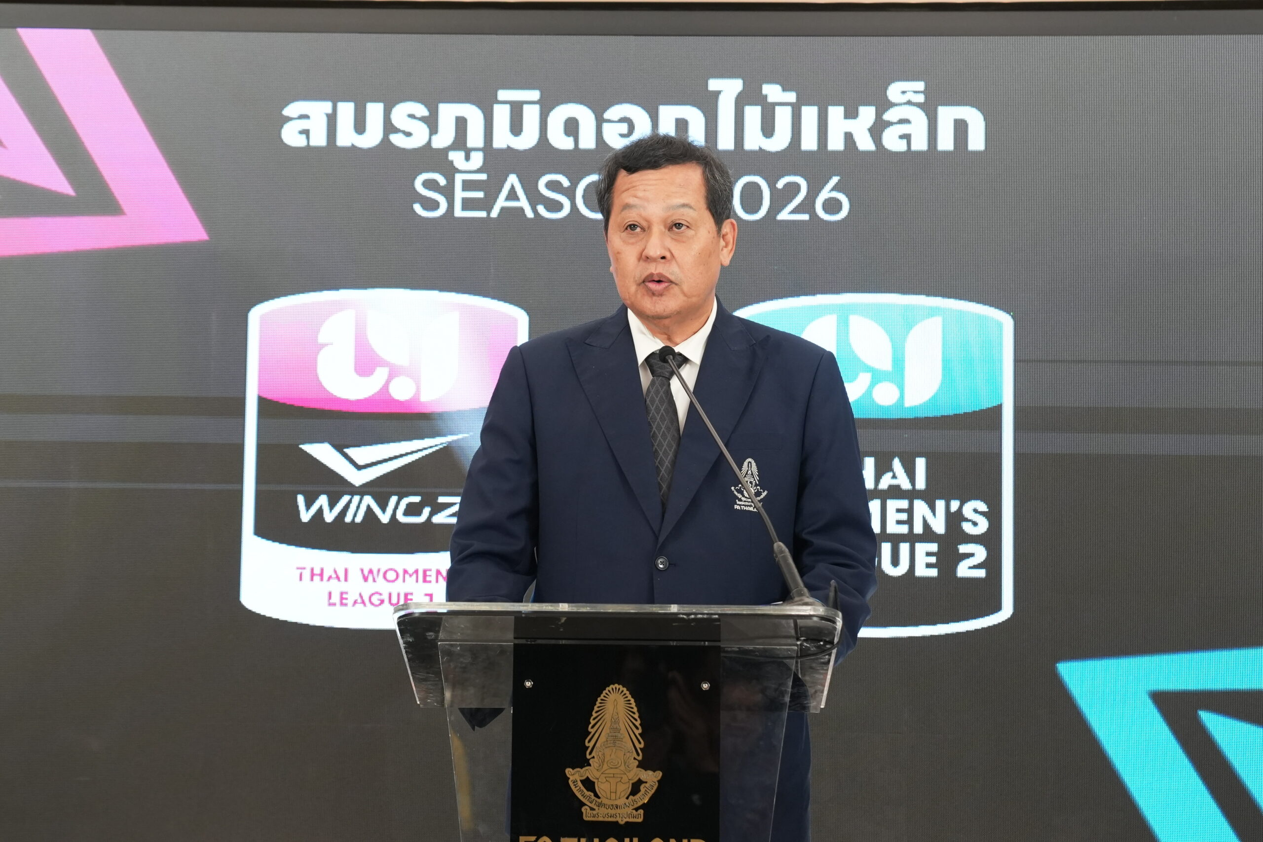 “สุดท้ายนี้ ในนามสมาคมฯ ขอขอบคุณผู้บริหาร AIS และ Monomax สำหรับครั้งแรกในการเข้ามาถ่ายทอดสดฟุตบอล ไทยวีเมนส์ลีก ครบทุกคู่ ทุกสนาม รวม 112 แมตช์ / ขอบคุณผู้บริหาร Wingz ที่เล็งเห็นถึงความสำคัญของฟุตบอลลีกหญิง เข้ามาเป็นผู้สนับสนุนหลัก แม้จะเป็นเพียงก้าวแรก แต่ก็เป็นก้าวที่สำคัญสำหรับ น้องๆ นักกีฬา ที่เข้าร่วมแข่งขัน Thai Women’s League 2026 ทั้งดิวิชั่น 1 จำนวน 8 ทีม และ ดิวิชั่น 2 จำนวน 8 ทีม จะเป็นเวทีสำคัญที่ช่วยกันสร้างมาตรฐาน ผลิตนักกีฬาคุณภาพ ก้าวสู่ทำเนียบทีมชาติไทย ขอให้ทุกสโมสรโชคดีสำหรับฤดูกาลใหม่ที่กำลังจะเริ่มขึ้น”