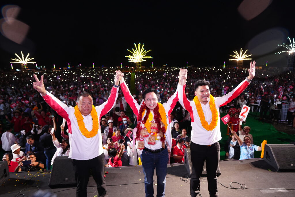 เพื่อพบปะประชาชนและปราศรัยช่วยหาเสียงให้นายสิทธิชัย หล่อประสงค์สุข ผู้สมัคร สส.เขต 2 เบอร์ 5, นายวรวงศ์ วรปัญญา ผู้สมัคร สส.เขต 4 เบอร์ 5 และนายพหล วรปัญญาผู้สมัคร สส.เขต 3 เบอร์ 2