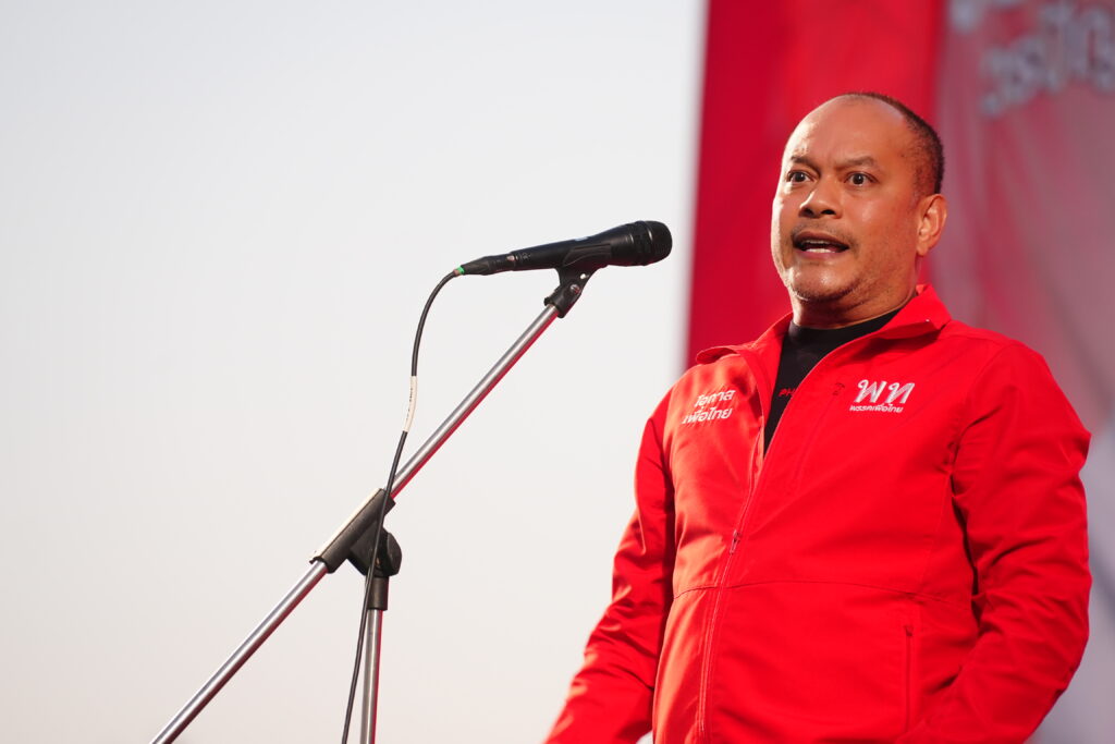 ด้านนายณัฐวุฒิ ใสยเกื้อ ปราศรัยโจมตีพรรคการเมืองฝ่ายสีน้ำเงิน โดยเตือนประชาชนให้ระวังการใช้ “กระสุนแบงก์เทา” เพื่อซื้อเสียงและกวาด สส.ทั้งจังหวัด พร้อมระบุว่าพรรคเพื่อไทยคัดเลือกผู้สมัครที่มีประวัติดี ไม่เกี่ยวข้องกับธุรกิจสีเทา และย้ำว่าการเลือกตั้งครั้งนี้เป็นจุดชี้ชะตาประเทศ ไม่ควรปล่อยให้ฝ่ายสีน้ำเงินกลับมาครองอำนาจรัฐอีกเนื่องจากคดีสำคัญอย่างฮั้ว สว. และคดีเขากระโดง ถูกทำให้เงียบหาย ซึ่งจะกระทบต่อระบบตรวจสอบและประชาธิปไตยในระยะยาว