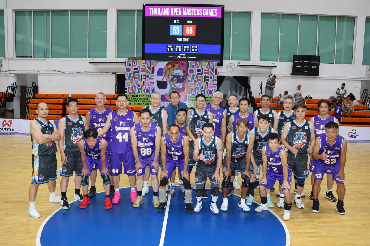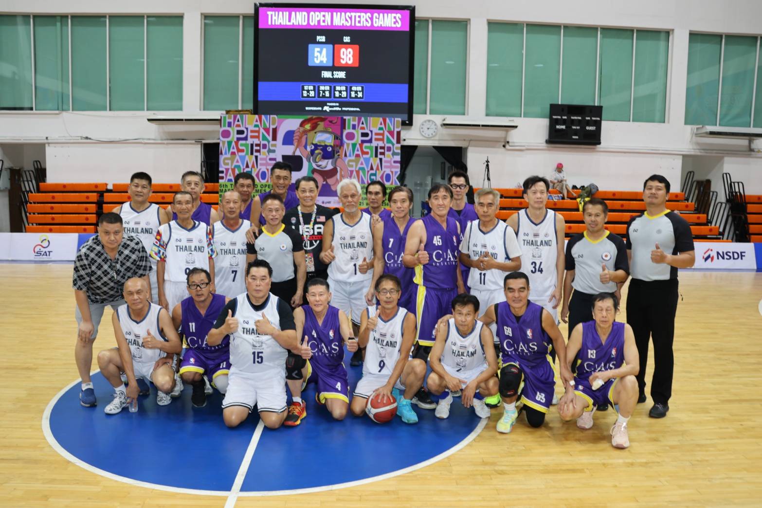 ยัดห่วงไฮเทค ไม่พลิก ชนะ ซีเอเอส ตามโผ 69-48 ในรุ่น 60 ปี ขึ้นไป บาสเกตบอล ไทยแลนด์ โอเพ่น มาสเตอร์เกมส์ ครั้งที่ 6 ส่วนรุ่น 51-60 ปี พลิกล็อค พ.พ.รวมใจ เฉือนชนะ ส.ข.กรชัย หวิวแค่ 2 แต้ม 53-51 ด้าน ฟู่ ไทย ช้าง ที่มี นักจิตวิทยา คีท จอห์น เอเวอร์รี่ วัย 60 ปี ย่าง 61 ปี ชาวสหรัฐอเมริกา มาสร้างสีสันได้ที่ 3