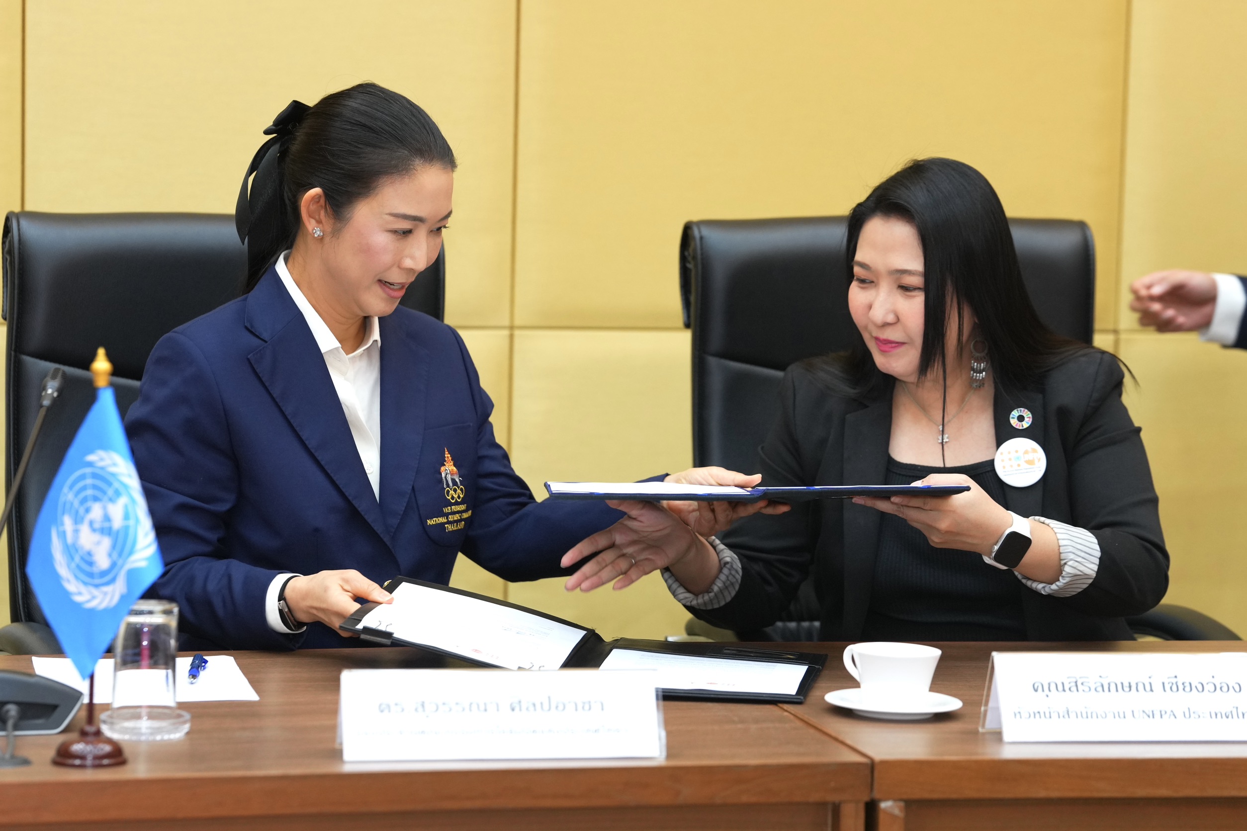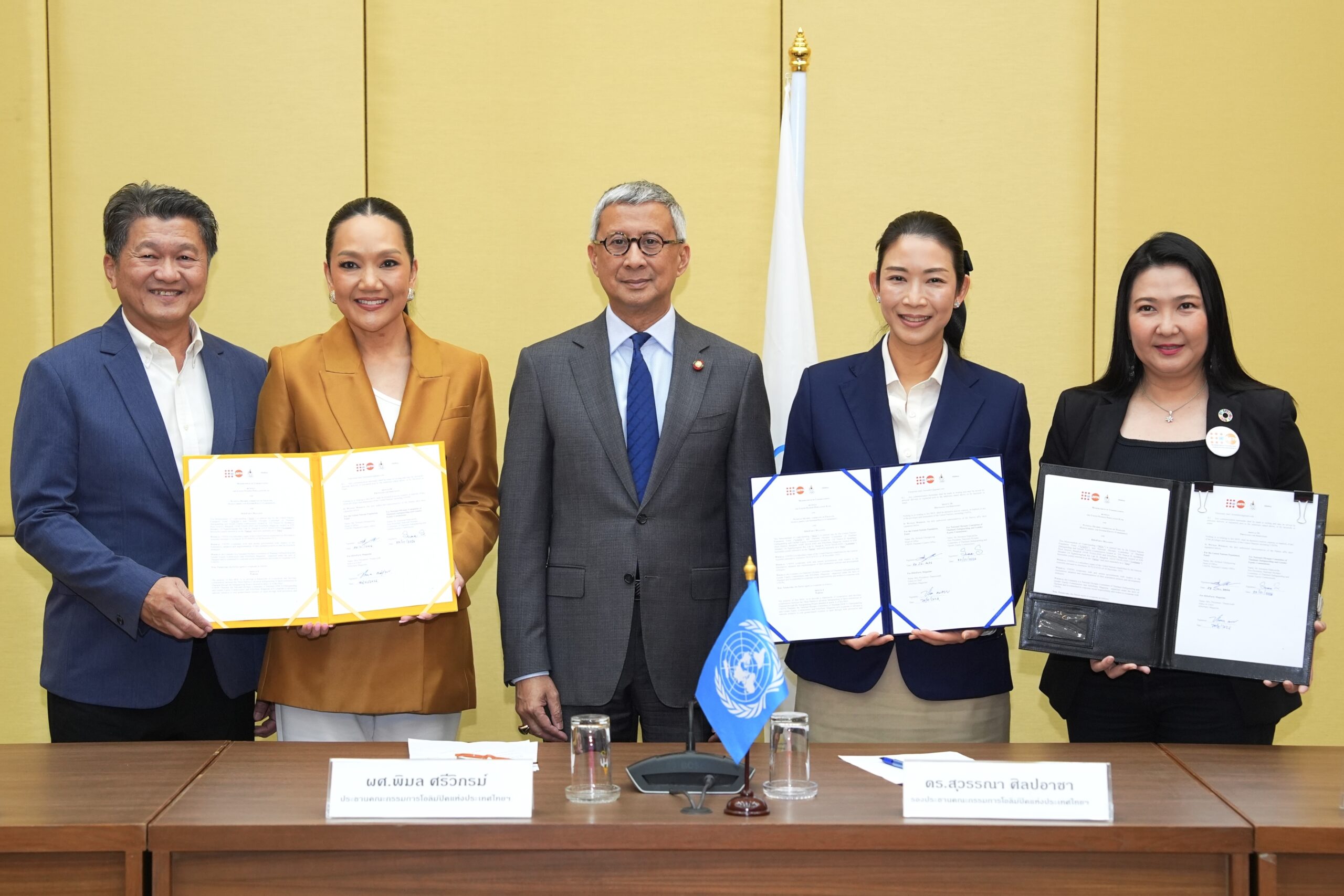 ดร.สุวรรณา ศิลปอาชา รองประธานคณะกรรมการโอลิมปิกแห่งประเทศไทย ในพระบรมราชูปถัมภ์ ร่วมกับ คุณสิริลักษณ์ เชียงวงศ์ หัวหน้าสำนักงานกองทุนประชากรแห่งสหประชาชาติ ประจำประเทศไทย (UNFPA) และ คุณปรียามล ธนวิสุทธิ์ Editor in Chief, HiSoParty Magazine ลงนามบันทึกความเข้าใจ (MOU) ร่วมกันยกระดับมาตรฐาน Safeguarding in Sport เพื่อ ปกป้องนักกีฬาและบุคลากรในวงการกีฬา จากการถูกคุกคามและความรุนแรงทุกรูปแบบ และสร้างสภาพแวดล้อมทางกีฬาที่ปลอดภัย เคารพศักดิ์ศรี และเท่าเทียม ที่ห้องประชุม 1 คณะกรรมการโอลิมปิคแห่งประเทศไทยฯ เมื่อวันที่ 27 ม.ค.69 โดยมี ผศ.ดร.พิมล ศรีวิกรม์ ประธานคณะกรรมการโอลิมปิคแห่งประเทศไทยฯ ให้เกียรติร่วมในพิธี