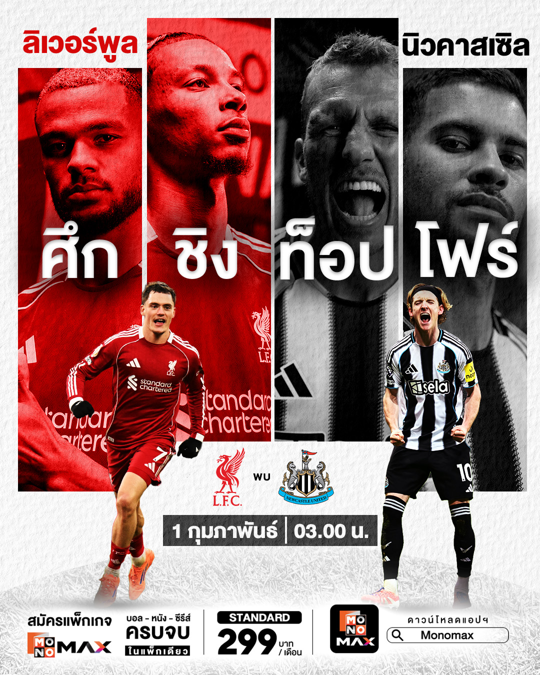 ศึกพรีเมียร์ลีกปลายเดือนเดือด Monomax ถ่ายทอดครบทุกคู่ “สเปอร์สดวลแมนฯซิตี้ – ลิเวอร์พูลปะทะนิวคาสเซิล”
