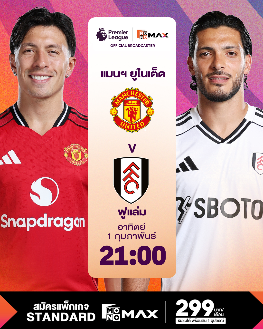 ปิดท้ายสัปดาห์ในคืน วันอังคารที่ 3 กุมภาพันธ์ 2569 เวลา 03.00 น. (คืนวันจันทร์ที่ 2 กุมภาพันธ์ 2569) Monomax ยิงสด ซันเดอร์แลนด์ พบ เบิร์นลีย์ สองทีมจากโซนล่างที่ต้องการชัยชนะเพื่อเพิ่มโอกาสอยู่รอดในพรีเมียร์ลีก ซึ่งผลการแข่งขันนัดนี้อาจส่งผลต่อสถานการณ์ระยะยาวของทั้งสองทีม