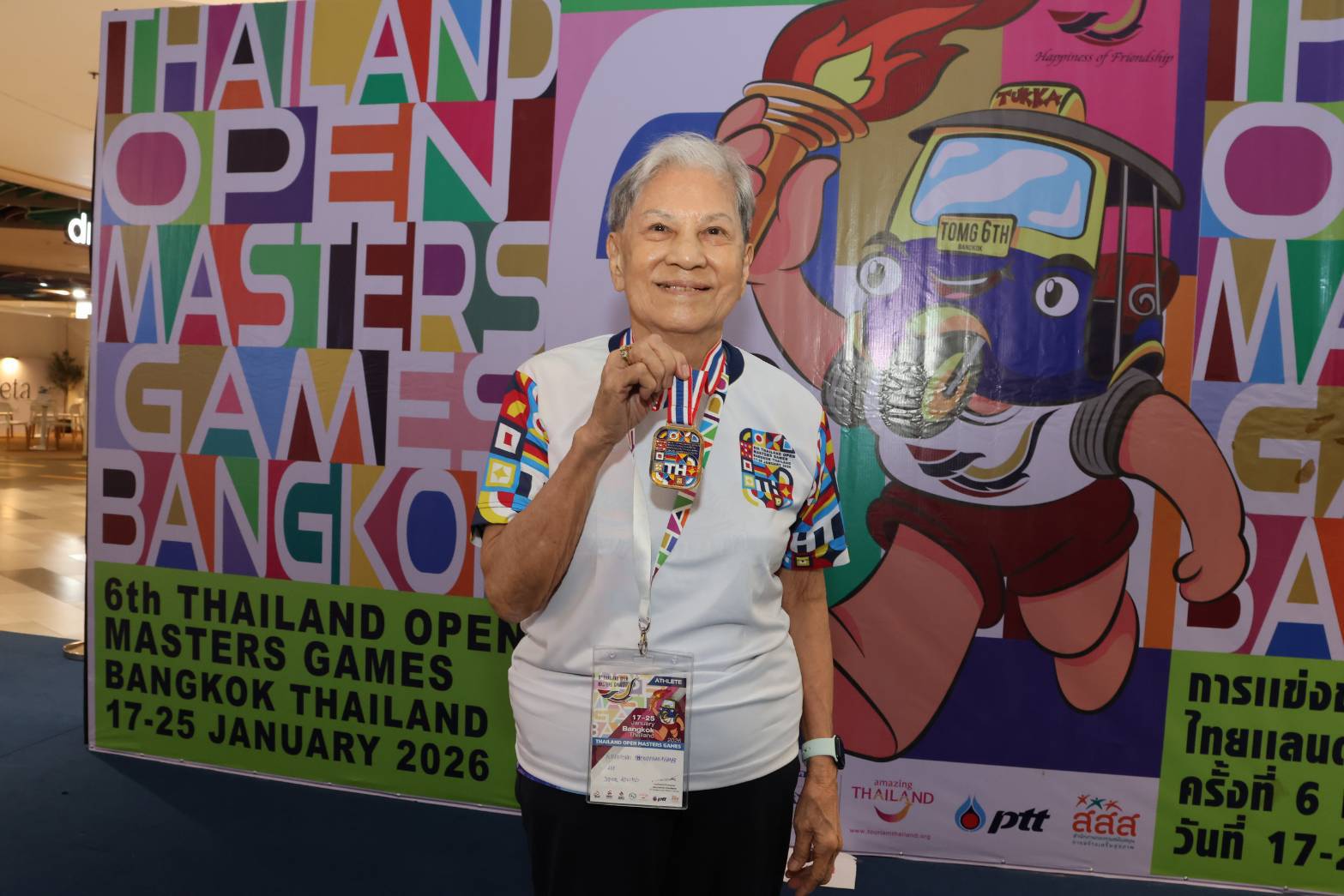 นอกจากนี้ ยังมี ป้าปาน-สมสง่า บุญนอก ในวัย 71 ปี นักกรีฑา มาลงแข่งขันอีกด้วย ได้เหรียญทอง รุ่น 70-74 ปี