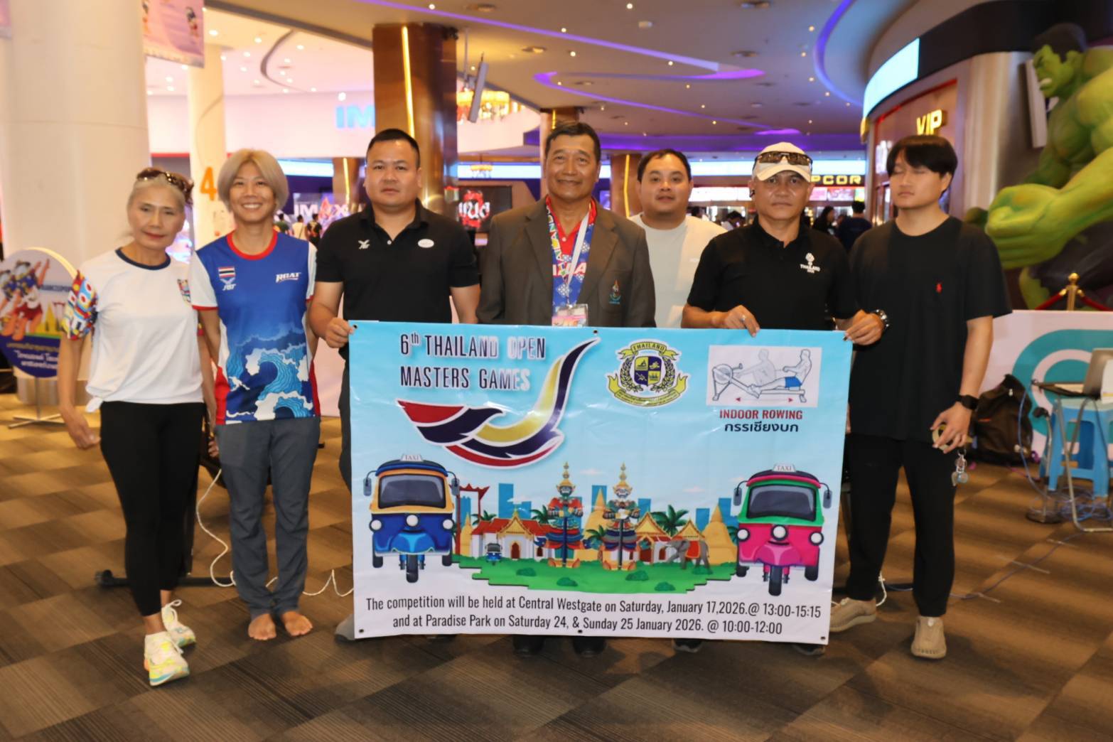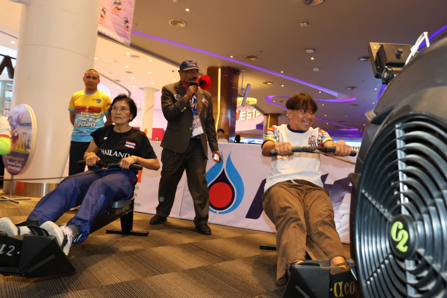 การแข่งขันเรือกรรเชียงบก กีฬาสูงอายุนานาชาติ ไทยแลนด์ โอเพ่น มาสเตอร์เกมส์ ครั้งที่ 6 ที่ศูนย์การค้าพาราไดซ์ปาร์ค ซึ่งเป็นกีฬาที่มีการแข่งขันเป็นปีแรกในรายการนี้