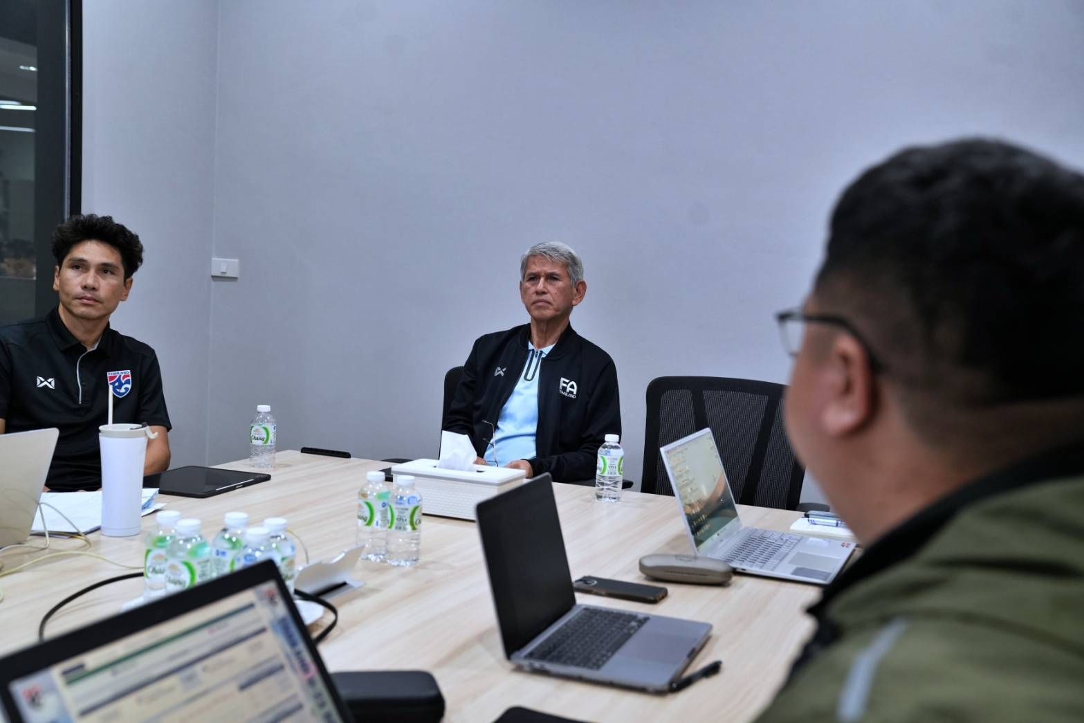 การประชุมดังกล่าวนำโดย ดร.ชาญวิทย์ ผลชีวิน อุปนายกสมาคมฯ พร้อมด้วย ธวัชชัย ดำรงอ่องตระกูล หัวหน้าผู้ฝึกสอนทีมชาติไทย, ทีมงานสตาฟโค้ช และเจ้าหน้าที่สมาคมฯ