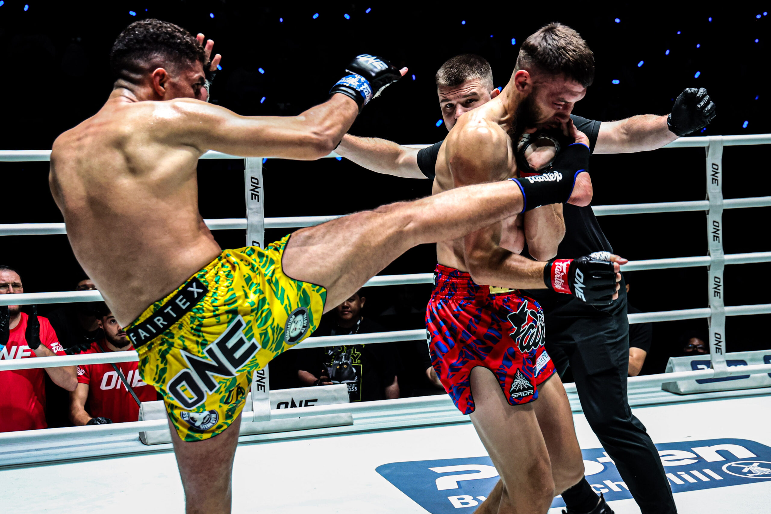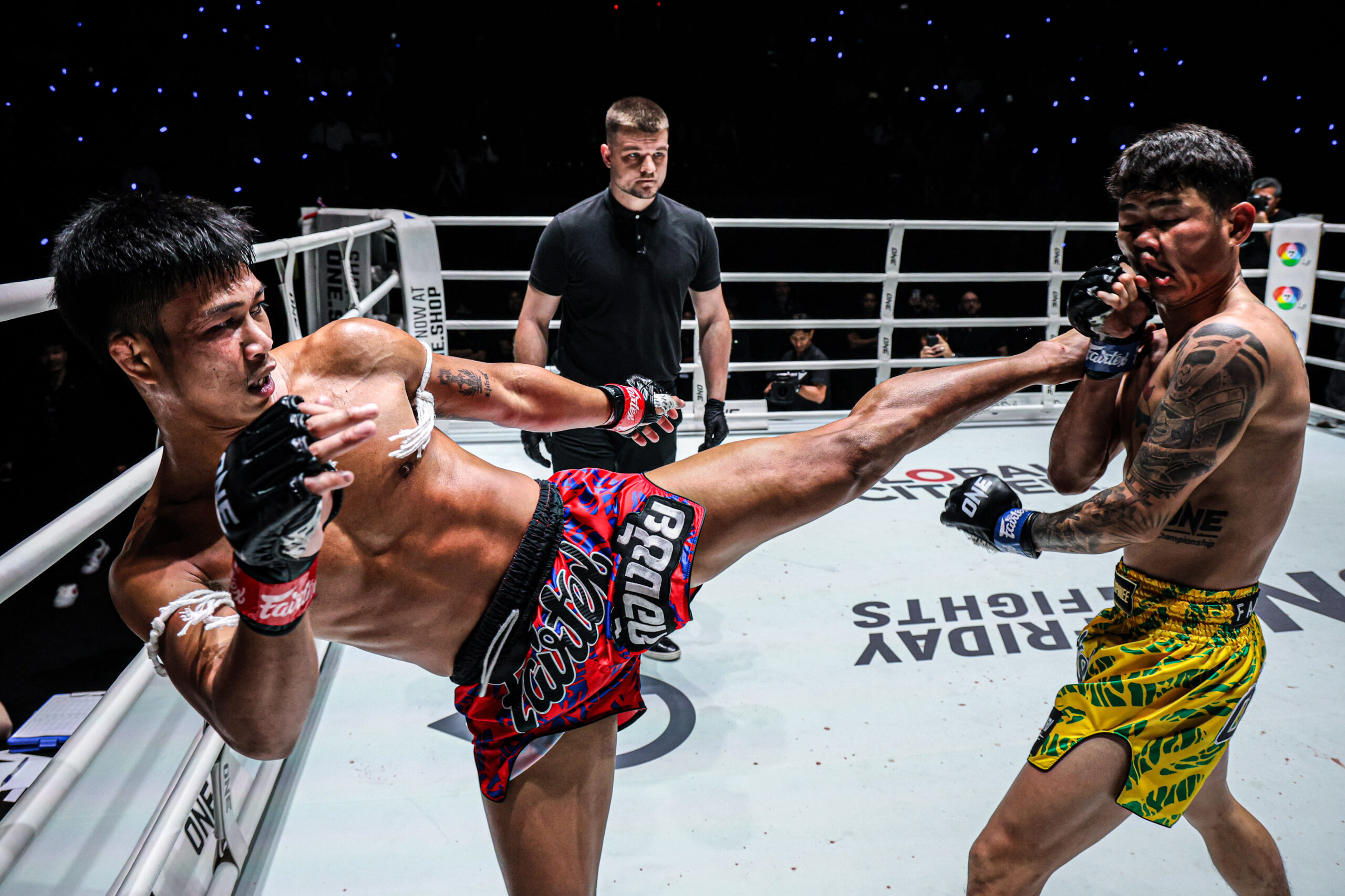 มันไม่กั๊กส่งท้ายเดือนแรก “ก้องชัย” ไล่นวดชนะแต้ม “ตุย ลิน ทัต” กติกามวยไทย รุ่นสตรอว์เวต ศึก ONE ลุมพินี 140
