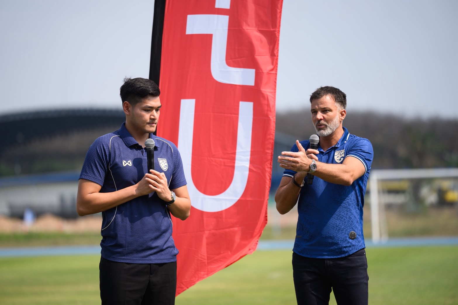 ภายในงานได้รับเกียรติจาก มร.แอนโธนี่ ฮัดสัน หัวหน้าผู้ฝึกสอนฟุตบอลชายทีมชาติไทยชุดใหญ่ และ “ตอง” กวินท์ ธรรมสัจจานันท์ ตำนานผู้รักษาประตูทีมชาติไทย มาร่วมพูดคุยและถ่ายทอดประสบการณ์ เพื่อสร้างแรงบันดาลใจให้กับผู้เข้าอบรมทั้ง 24 ท่าน โดยบรรยากาศการอบรมเป็นไปอย่างเข้มข้น ครอบคลุมทั้งภาคทฤษฎีและภาคปฏิบัติในสนามจริง ผู้เข้าอบรมได้เรียนรู้แนวคิดฟุตบอลสมัยใหม่ การวางแท็กติก การพัฒนาผู้เล่นรายบุคคล รวมถึงการบริหารจัดการทีมในระดับแข่งขัน โดยว่าที่โค้ชระดับ AFC ‘B’ License ต่างร่วมแลกเปลี่ยนความรู้ ประสบการณ์ และแท็กติกกันอย่างจริงจัง สะท้อนถึงความมุ่งมั่นในการนำองค์ความรู้ไปต่อยอดพัฒนาเยาวชน สโมสรต้นสังกัด และฟุตบอลระดับอาชีพของไทยต่อไป