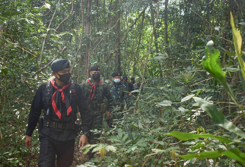 กองพันทหารราบที่ 21 หน่วยเฉพาะกิจที่ 2 จัดกำลังพลร่วมกับหน่วยเฉพาะกิจกรมทหารพรานที่ 26 ทำการลาดตระเวนในพื้นที่แนวชายแดนไทย-กัมพูชา พื้นที่ตำบลตาเมียง อำเภอพนมดงรัก จังหวัดสุรินทร์ ถึง ตำบลสายตะกู อำเภอบ้านกรวด จังหวัดบุรีรัมย์ เพื่อป้องกันการแพร่ระบาดของเชื้อ โควิด-19 จากผู้ลักลอบเข้าเมืองโดยผิดกฎหมายตามช่องทางธรรมชาติ