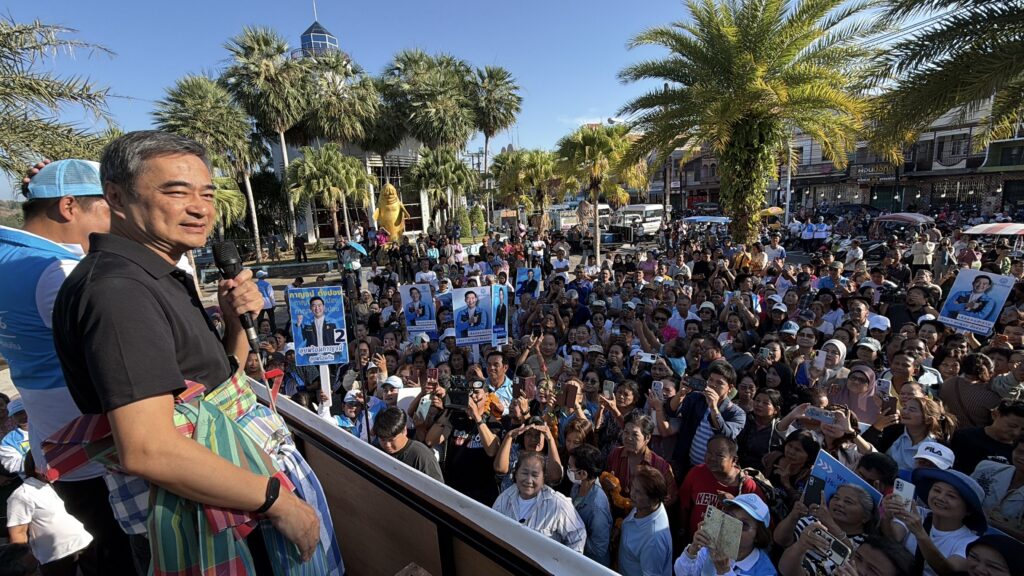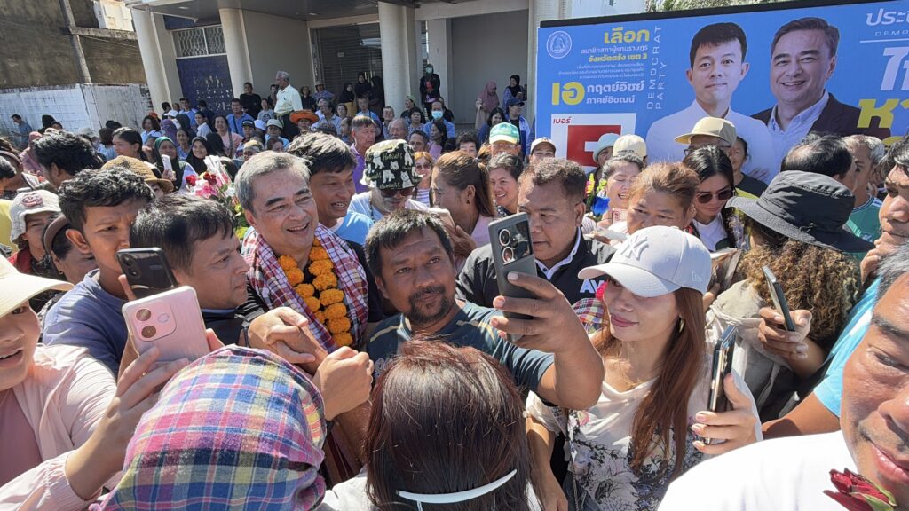 “อภิสิทธิ์”ลุยหาเสียงตรัง ชาวกันตังรักจริงคล้องมาลัย-มอบเงิน 3,000 บาทช่วยหาเสียง ด้าน”สาทิตย์”ขอส่งเสียงให้ดังถึงบุรีรัมย์ ก่อนขึ้นเวทีปราศรัยใหญ่เย็นนี้