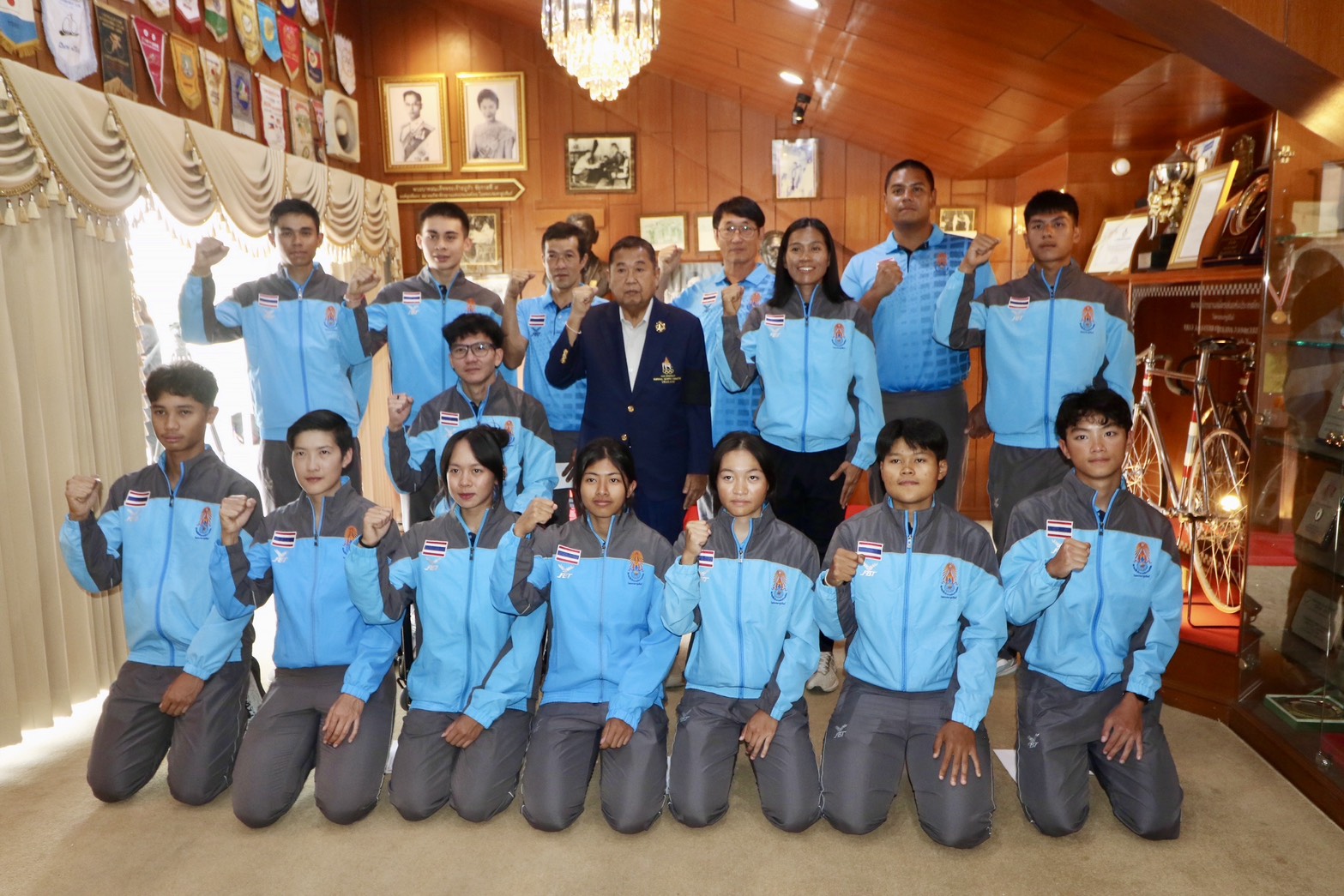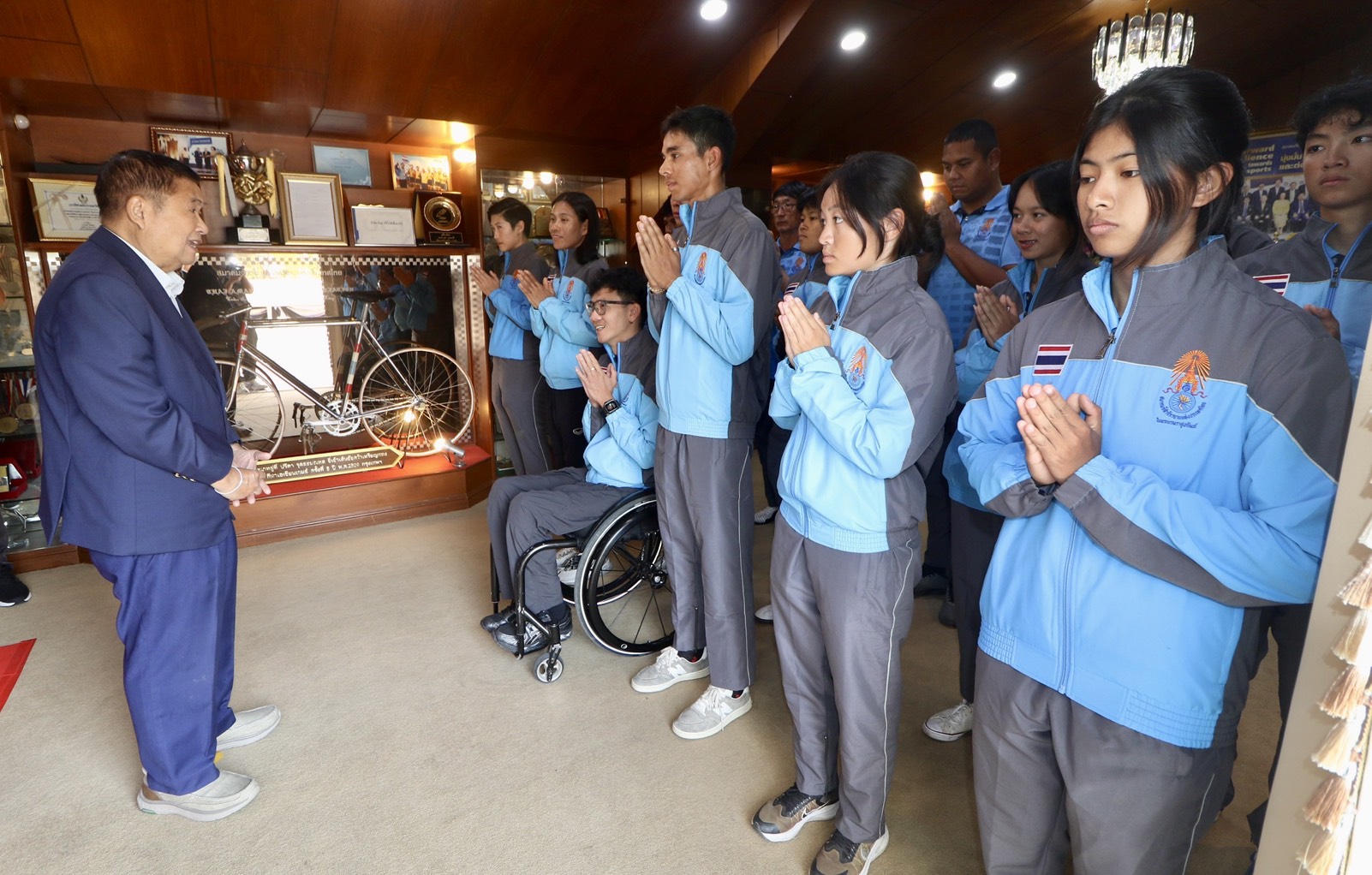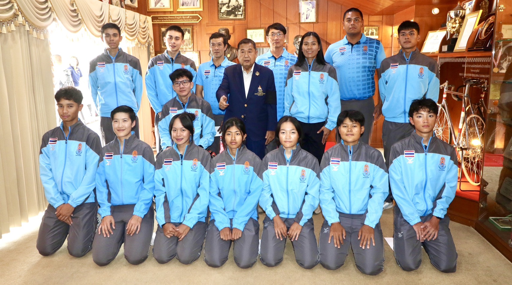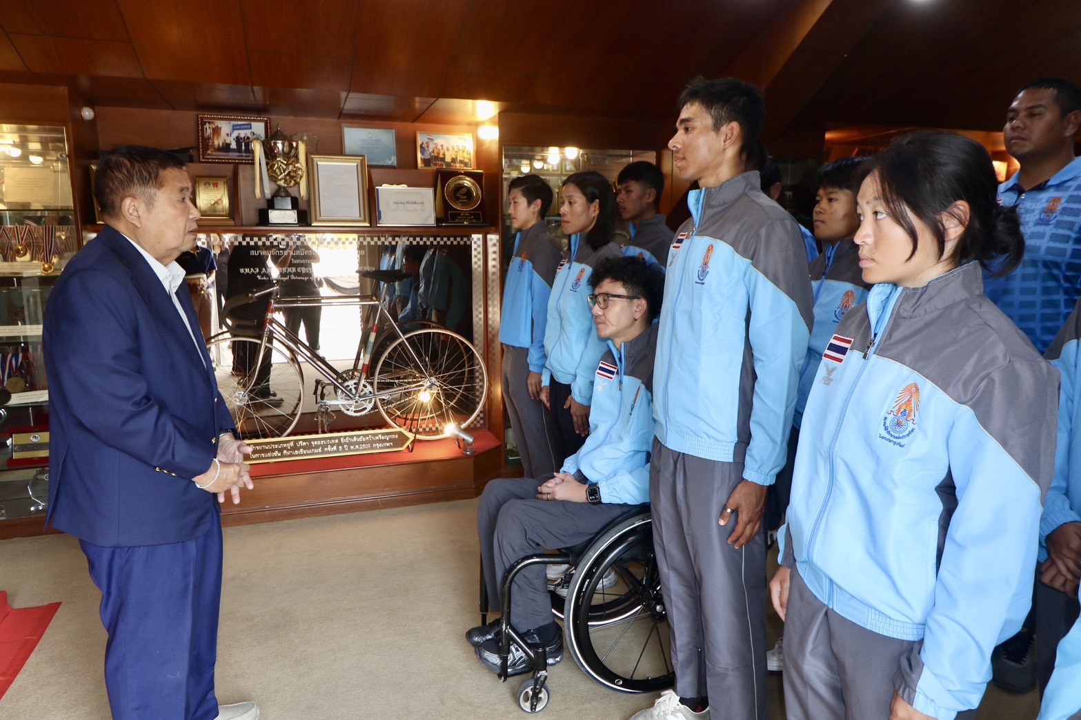 “เสธ.หมึก” พลเอกเดชา เหมกระศรี รองประธานสมาพันธ์จักรยานแห่งเอเชีย (ACC), ประธานสหพันธ์จักรยานแห่งอาเซียน (ACF) และนายกสมาคมกีฬาจักรยานแห่งประเทศไทย ในพระบรมราชูปถัมภ์ ให้โอวาทแก่นักกีฬาทีมชาติไทย ก่อนเดินทางไปเข้าร่วมแข่งขันจักรยานประเภทถนนชิงแชมป์เอเชีย 2026 ระหว่างวันที่ 5-11 กุมภาพันธ์ ที่ประเทศซาอุดิอาระเบีย ภายใต้การควบคุมทีมของ “โค้ชบาส” พ.อ.อ.ภุชงค์ ซ้ายอุดมศิลป์ ผู้ฝึกสอนทีมชาติไทย และ มร.หลี่ เสี่ยว เล่อ ผู้ฝึกสอนชาวจีน ณ ห้องเกียรติภูมิจักรยานไทย สมาคมกีฬาจักรยานแห่งประเทศไทยฯ เมื่อวันที่ 3 กุมภาพันธ์