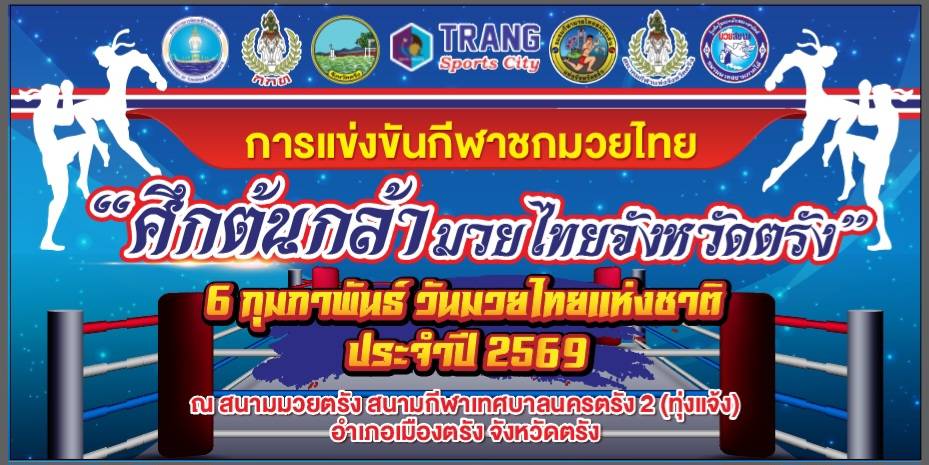 ทางสำนักงานการกีฬาแห่งประเทศไทยจังหวัดตรัง ร่วมกับสมาคมกีฬาแห่งจังหวัดตรัง และชมรมกีฬามวยไทยสมัครเล่นจังหวัดตรัง และค่ายมวยต่างๆ ได้จัดกิจกรรม พิธีเจริญพระพุทธมนต์ การร่ายรำไหว้ ครูมวยไทย การแข่งขันแสดงคีตะมวยไทย และการแข่งขันกีฬามวยไทย “ศึกต้นกล้ามวยไทยจังหวัดตรัง” ประจำปี 2569 ในวันศุกร์ที่ 6 กุมภาพันธ์ 2569 ณ สนามมวยตรัง สนามกีฬาเทศบาลนครตรัง 2 (ทุ่งแจ้ง) อำเภอเมืองตรัง จังหวัดตรัง เพื่อเป็นการส่งเสริมอนุรักษ์ศิลปะมวยไทย ส่งเสริมให้เยาวชนต้นกล้าเป็นนักกีฬามวยไทย ส่งเสริมการท่องเที่ยวกระตุ้นเศรษฐกิจฐานราก