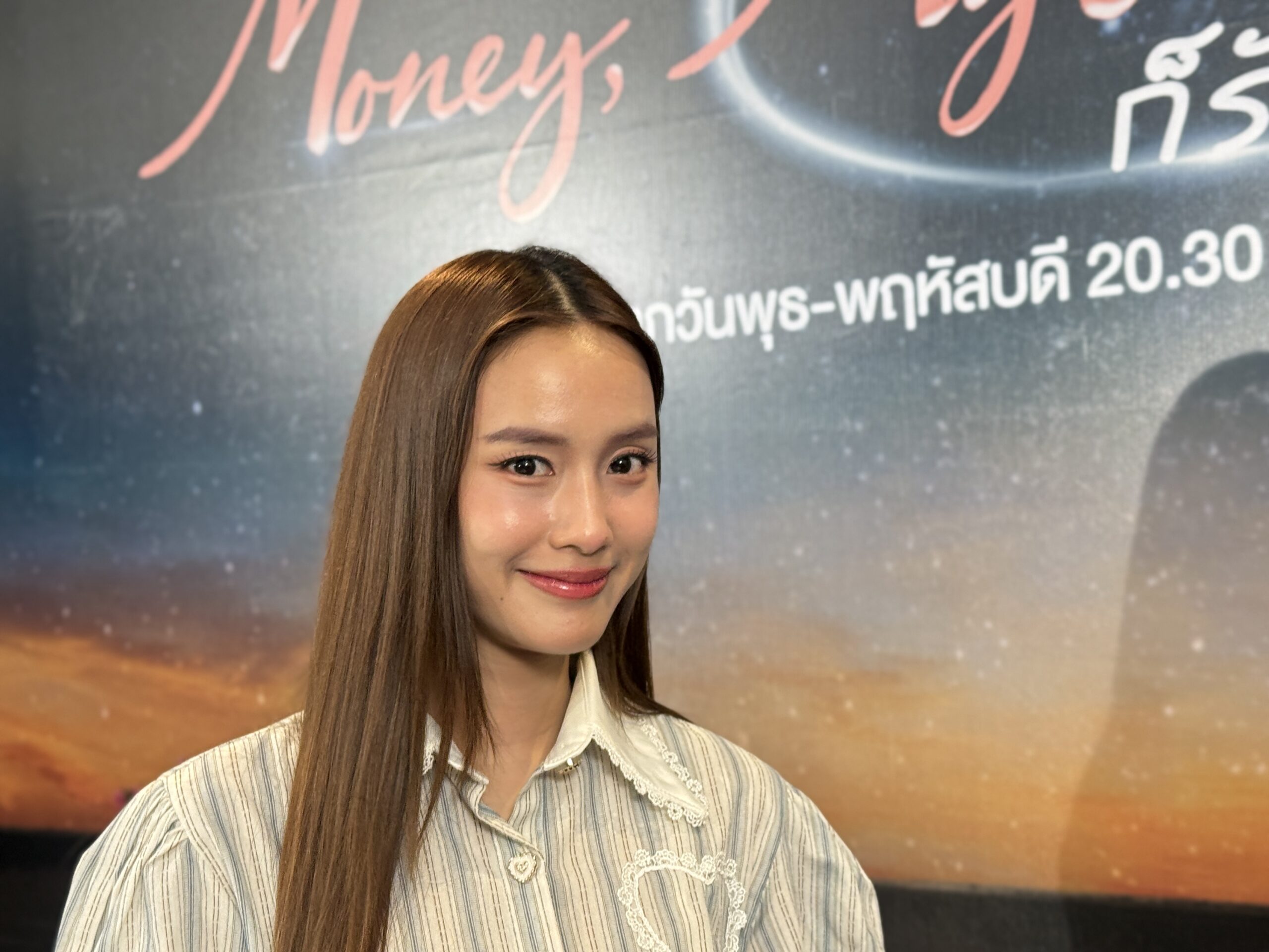 ทางด้านละครเรื่องแรก เป็นนางเอกด้วย เอาจริงๆ บอกเลยว่ามีความกดดันนิดหนึ่ง แต่ว่าก็ทำเต็มที่ให้ดีที่สุด แล้วก็ฝากรับชมกันด้วยกดทางช่อง 3
