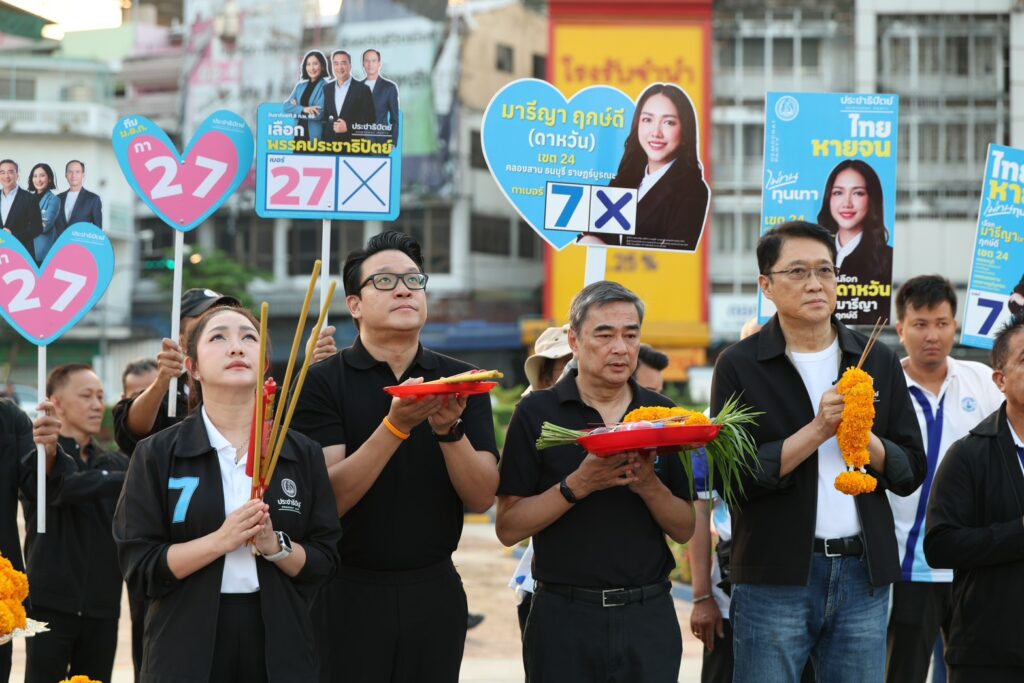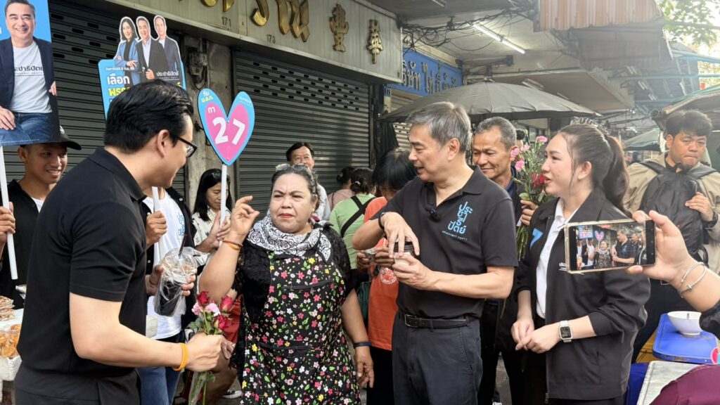“อภิสิทธิ์-สกลธี”ช่วย”มารียา” ผู้สมัคร สส.กทม.เขต24 หาเสียง ประกาศพร้อมพาประเทศหลุดพ้น เมินไม่ถูกเชิญร่วมรัฐบาล บอกถ้าประชาชนเลือกเราเยอะเขาก็หนีไม่ออก ชี้เสียดาย รองหัวหน้า ภท.ด้อยค่าคนอื่น ขณะปชน.ปราศรัยแบ่งแยก