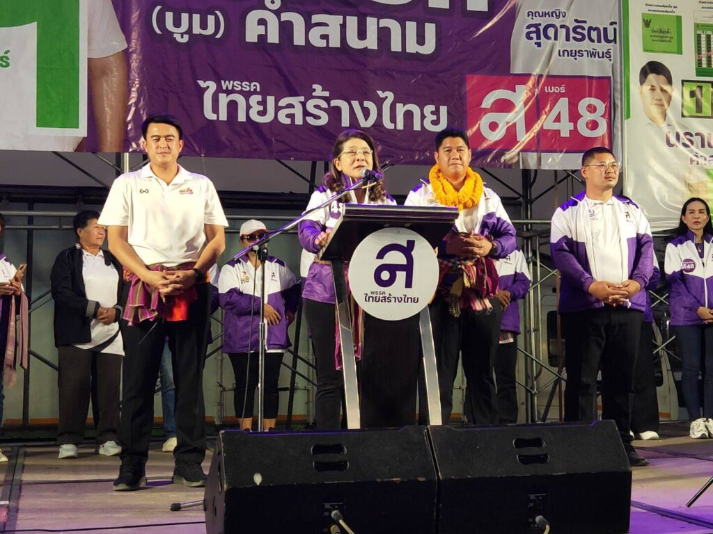 คุณหญิงสุดารัตน์ เกยุราพันธุ์ แคนดิเดตนายกรัฐมนตรี พรรคไทยสร้างไทย หมายเลข 48 ขึ้นเวทีปราศรัยใหญ่ ณ จังหวัดร้อยเอ็ด เพื่อพบปะพี่น้องชาวร้อยเอ็ดและช่วยผู้สมัคร สส. หาเสียง ทั้งนายประทีป โสดา (เขต 6 เบอร์ 5), นายชัชวาล แพทยาไทย (เขต 7 เบอร์ 4) และนายนราเอก คำสนาม (เขต 8 เบอร์ 1)