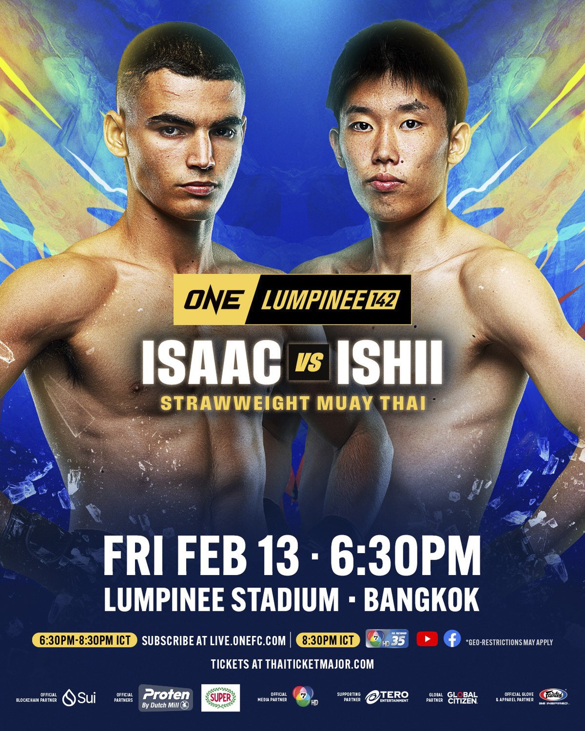 เผยคู่มวยเดือดที่จะเข้ามาสร้างความเร้าใจให้กับศึก ONE ลุมพินี 142 ที่จะระเบิดความมันขึ้นในวันศุกร์ที่ 13 ก.พ.นี้ โดยประกบสองนักชกดาวรุ่งไร้พ่ายมาประชันฝีมือกันระหว่าง “เพชรหนึ่ง” ไอแซค โมฮัมเหม็ด ดาวบู๊ วัย 19 ปี จากฝรั่งเศส/แอลจีเรีย พบกับ “จูราอิ อิชิอิ” มวยอาวุธคล่อง วัย 20 ปี จากญี่ปุ่น ในกติกามวยไทย รุ่นสตรอว์เวต (115-125 ป.)