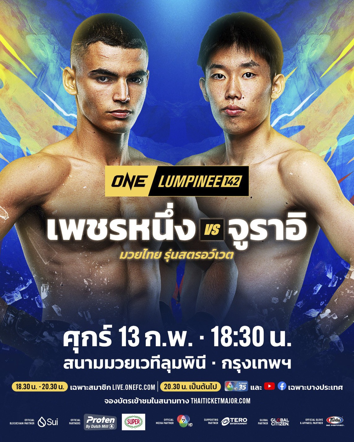 ศึก ONE ลุมพินี 142 เริ่มการแข่งขันคู่แรกเวลา 18.30 น. จองบัตรเข้าชมได้ทาง THAI TICKET MAJOR