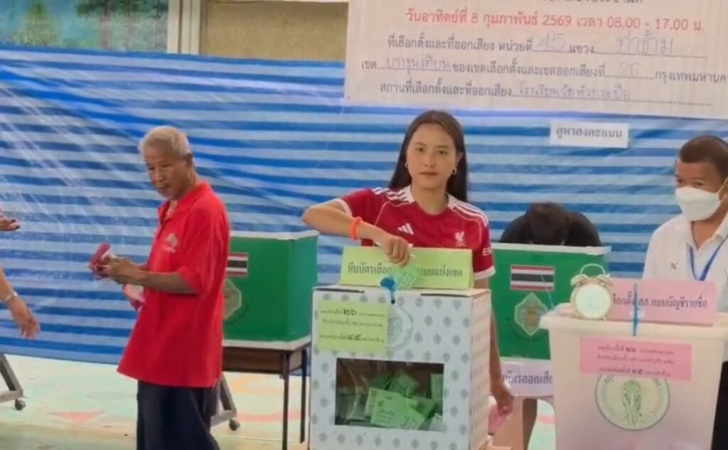 ขณะที่อีกบรรยากาศหนึ่งที่โรงเรียนวัดหัวกระบือ เขตบางขุนเทียน นางสาวรักชนก ศรีนอก ผู้สมัคร สส.บัญชีรายชื่อ พรรคประชาชน เดินทางมาใช้สิทธิ์ในเวลา 08.50 น. โดยปั่นจักรยานมาด้วยตนเอง สวมเสื้อทีมลิเวอร์พูลสีแดง กางเกงขาสั้นสีขาว รองเท้าสีส้ม และกำไลข้อมือสีส้ม ท่ามกลางประชาชนที่เข้ามาทักทายและขอถ่ายรูปอย่างต่อเนื่อง