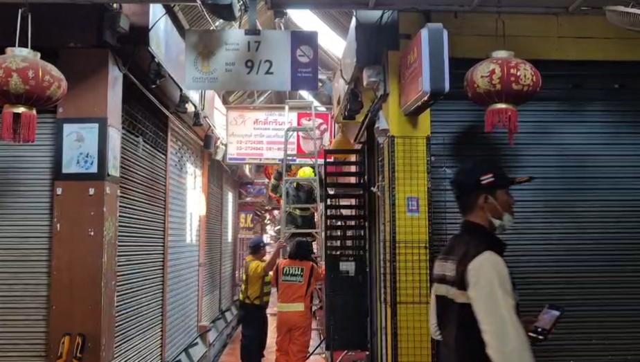 พฐ.เข้าตรวจสอบเหตุไฟไหม้จตุจักร พบกลุ่มควันปะทุซ้ำ ร้านเครื่องเบญจรงค์ เจ้าหน้าที่ควบคุมได้แล้ว – ผอ.เขตจตุจักร เร่งเยียวยา เตรียมงดเว้นค่าเช่า
