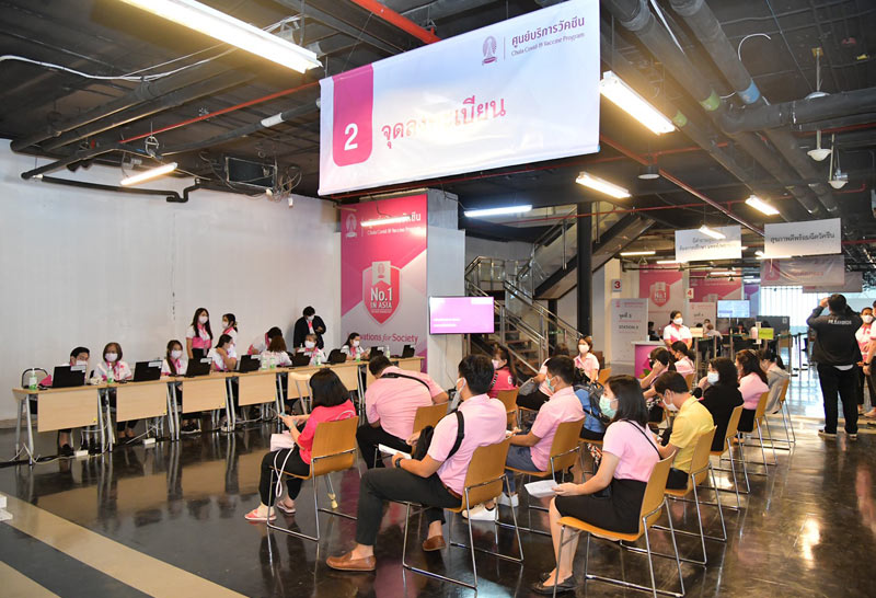 ทั้งนี้ กระบวนการรับวัคซีน มีการนำเทคโนโลยีจากนวัตกรรมของคนไทย เช่น เป็ดไทยสู้ภัย เข้ามาใช้ในการจองคิวล่วงหน้า เพื่อเพิ่มความรวดเร็วในการให้บริการ นอกจากนี้ยังมีการออกแบบระบบที่เชื่อมโยงข้อมูลกับระบบสาธารณสุขของประเทศผ่านกรมควบคุมโรค กระทรวงสาธารณสุข โดยมีระบบการลงทะเบียนเป็นกลุ่ม (Group Registration) เพิ่มศักยภาพในการฉีดวัคซีนได้เป็นจำนวนมาก และเข้าถึงประชาชนได้อย่างรวดเร็ว