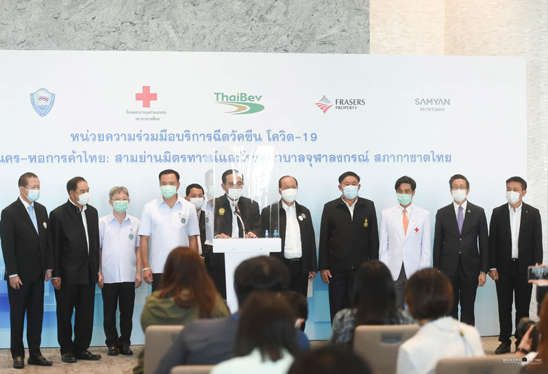 พล.อ.ประยุทธ์ จันทร์โอชา นายกรัฐมนตรีและรัฐมนตรีว่าการกระทรวงกลาโหม พร้อมด้วย นายอนุทิน ชาญวีรกูล รองนายกรัฐมนตรีและรัฐมนตรีว่าการกระทรวงสาธารณสุข พล.อ.อนุพงษ์ เผ่าจินดา รัฐมนตรีว่าการกระทรวงมหาดไทย ตรวจเยี่ยมการให้บริการฉีดวัคซีนของจุฬาลงกรณ์มหาวิทยาลัยณ อาคารจัตุรัสจามจุรี ชั้น 4 จุฬาลงกรณ์มหาวิทยาลัย เขตปทุมวัน กรุงเทพฯ และตรวจเยี่ยมหน่วยความร่วมมือบริการวัคซีนโควิด 19 กรุงเทพมหานคร – สภาหอการค้าไทย – โรงพยาบาลจุฬาลงกรณ์ – สามย่านมิตรทาวน์ ณ ศูนย์การค้าสามย่านมิตรทาวน์ เขตปทุมวัน กรุงเทพฯ