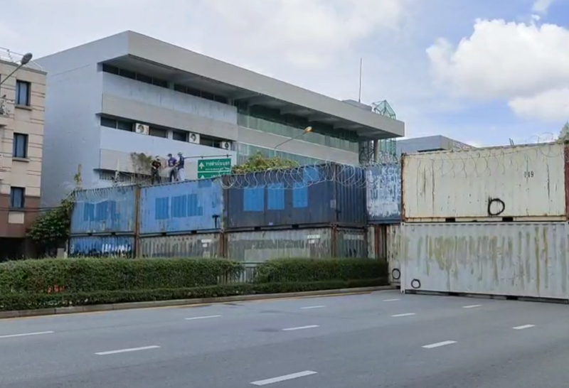 จนท. ตั้ง ตู้คอนเทนเนอร์ พร้อมลวดหนาม ปิดแยกนางเลิ้ง มุ่งหน้าทำเนียบ พร้อมปิดสะพานอรทัย ประตูทางเข้าทำเนียบรัฐบาล ถนนลูกหลวง