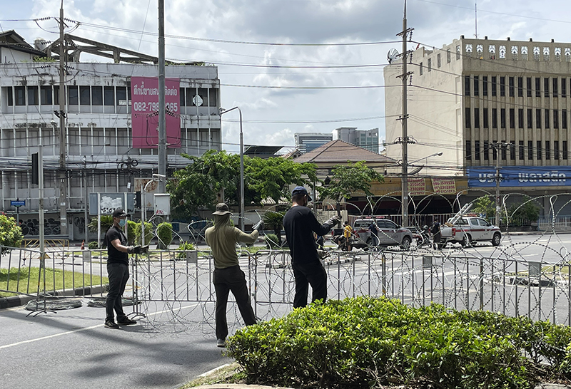 เจ้าหน้าที่เริ่มวางแผงเหล็ก ลวดหนามหีบเพลงปิดถนนวิภาวดีฝั่งขาออกมุ่งหน้าบ้าน นายกฯ