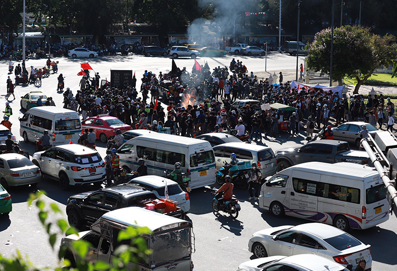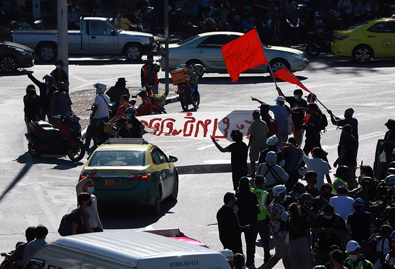 ม็อบ เผาหุ่นจำลองผู้ป่วยโควิด พร้อมคลื่อนขบวนไปยังทำเนียบรัฐบาล ขณะตำรวจนำตู้คอนเทนเนอร์ ลวดหนามปิดกั้นเส้นทาง