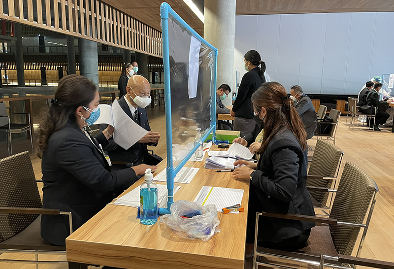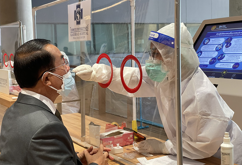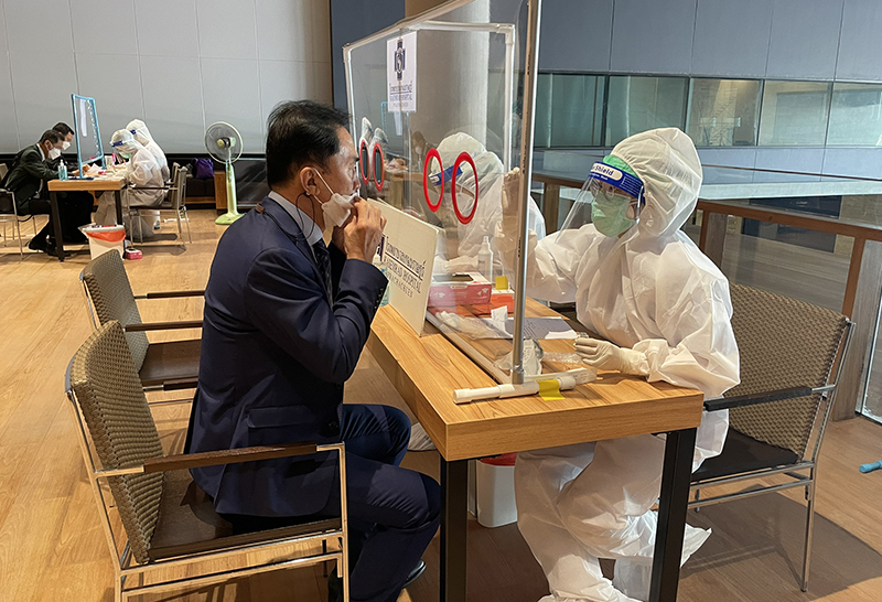 ก่อนการเริ่มประชุมสภาผู้แทนราษฎร เพื่อพิจารณาร่างพ.ร.บ.งบประมาณรายจ่ายประจำปีงบประมาณ พ.ศ.2565 ที่คณะกรรมาธิการวิสามัญพิจารณาเสร็จแล้วในวาระ 2 บริเวณหน้าห้อง ประชุมสภา ได้มีการตรวจหาเชื้อไวรัสโคโรนา 2019 (โควิด-19) ให้กับ ส.ส. ที่จะเข้าร่วมการประชุม โดยเป็นการสมัครใจ ส.ส. ไม่ได้บังคับ แต่ส่วนใหญ่ ส.ส. ได้ทยอยตรวจแบบ Antigen Test Kit (ATK) ซึ่งผลการตรวจยังไม่เจอ ส.ส.ที่ติดเชื้อโควิด