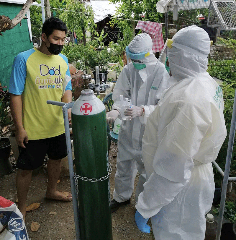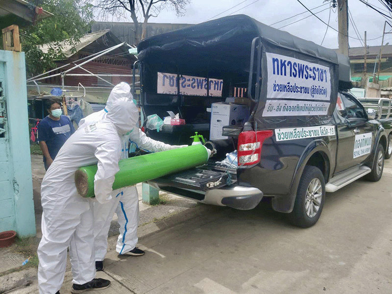ทบ.สนับสนุนทีมแพทย์อาสาฯ นำส่งถังออกซิเจน ช่วยต่อลมหายใจผู้ป่วยโควิดที่รักษาตัวที่บ้าน ในพื้นที่ กทม.และปริมณฑล