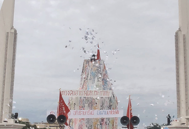 โดยกิจกรรมมีการร้องเพลงให้กำลังใจแกนนำที่ถูกจับกุม คุมขังในเรือนจำ โดยเวลา 18.10 น. กลุ่มทะลุฟ้าได้มีการยืนเคารพธงชาติโดยมีการให้มวลชนยืนใกล้บริเวณอนุสาวรีย์ประชาธิปไตย มีการยืนชู 3 นิ้ว และโปรยกระดาษจำนวน 11,112 แผ่น โดยมีข้อความ เช่น รัฐธรรมนูญต้องเขียนจากประชาชน, ประชาชนจงเจริญ เป็นต้นจากด้านบนพานและแท่นโดยรอบอนุสาวรีย์ประชาธิปไตย และมีการยืนไว้อาลัยให้กับผู้เสียชีวิตจากโควิด-19 และรัฐบาลที่ล้มเหลวในการจัดการปัญหาโควิด-19 เป็นเวลา 1 นาที รวมถึงมีการเปิดฟรีไมค์ให้มวลชนขึ้นมาแสดงความคิดเห็นด้วย โดยใช้เวลาไม่เกิน 3-5 นาที