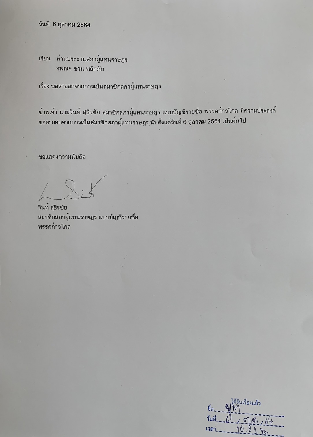 ส.ส.ก้าวไกลประกาศลาออก! เตรียมตั้งพรรคใหม่