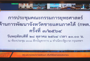 และเห็นชอบแนวทางมอบอำนาจให้เลขา ศอ.บต. พร้อมทั้งได้ติดตามความคืบหน้าการดำเนินการตามนโยบาย ได้แก่ การช่วยเหลือและพัฒนาแรงงานไทยในพื้นที่จังหวัดชายแดนภาคใต้ ที่เดินทางกลับจากต่างประเทศภายใต้สถานการณ์โควิด-19แล้วกว่า 10,000 คน และจะเร่งพัฒนาอีก 7,000 คนให้แล้วเสร็จใน มี.ค. 65 แยก 3 กลุ่ม ประกอบด้วย ผู้ที่ประสงค์จะประกอบอาชีพในภูมิลำเนาเดิม ผู้ที่พร้อมไปทำงานในโรงงานอุตสาหกรรมนอกพื้นที่และผู้ที่ประสงค์เข้าทำงานเกษตรสวนปาล์มในมาเลเซีย