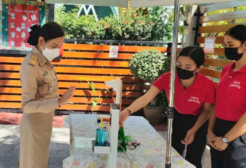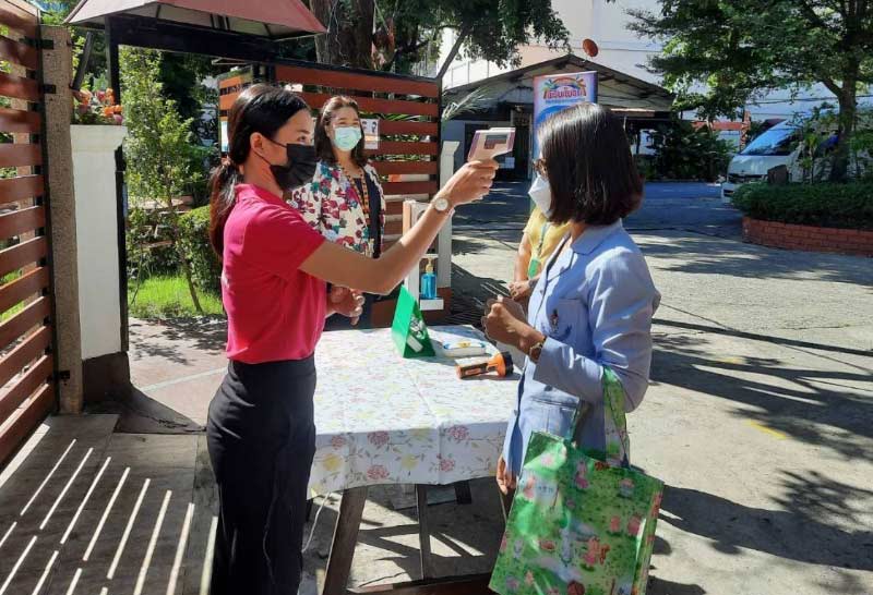 โดยให้ส่งผลตรวจก่อนวันเข้าเรียน จากนั้นจะมีการสุ่มตรวจ ATK สัปดาห์ละ 2 ครั้ง โดยสุ่ม 20% ของทั้งสถานศึกษา ด้านการจัดห้องเรียนจะจัดห้องเรียน 1 ห้องต่อเด็กนักเรียน 20 คน โดยให้มีการเว้นระยะห่างกัน อีกทั้งทางโรงเรียนมีการตั้งจุดคัดกรอง และมีการลงข้อมูลวัดอุณหภูมิก่อนเข้าเรียน