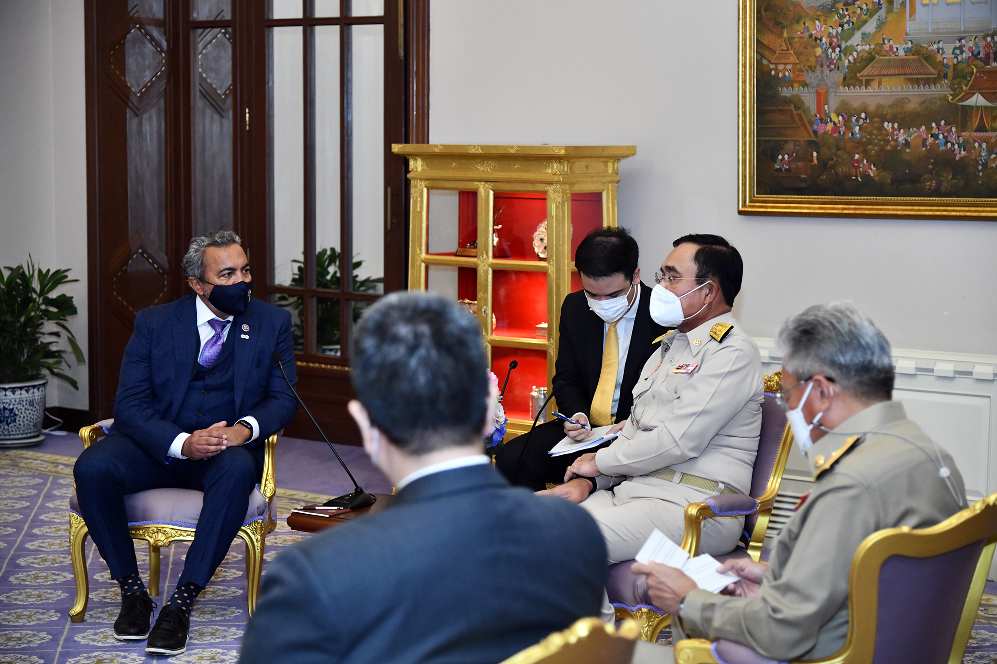 นาย Amerish “Ami” Bera ประธานคณะอนุกรรมาธิการ ด้านเอเชีย แปซิฟิก เอเชียกลาง และการไม่แพร่ขยายอาวุธ คณะกรรมาธิการต่างประเทศ สภาผู้แทนราษฎรสหรัฐฯนำคณะสภาชิกสภาผู้แทนราษฎรสหรัฐฯ เข้าเยี่ยมคารวะ พล.อ.ประยุทธ์ จันทร์โอชา นายกรัฐมนตรีและรัฐมนตรีว่าการกระทรวงกลาโหม ในโอกาสเดินทางเยือนไทย โดยถือเป็นคณะแรกที่เยือนไทยนับตั้งแต่สถานการณ์การแพร่ระบาดของโควิด-19 สะท้อนถึงความสัมพันธ์อันแน่นแฟ้น และยาวนานระหว่างกัน โดยรัฐบาลไทยพร้อมสนับสนุนการทำงานร่วมกับสหรัฐฯ อย่างเต็มที่ เพื่อประโยชน์ร่วมกันอย่างรอบด้าน