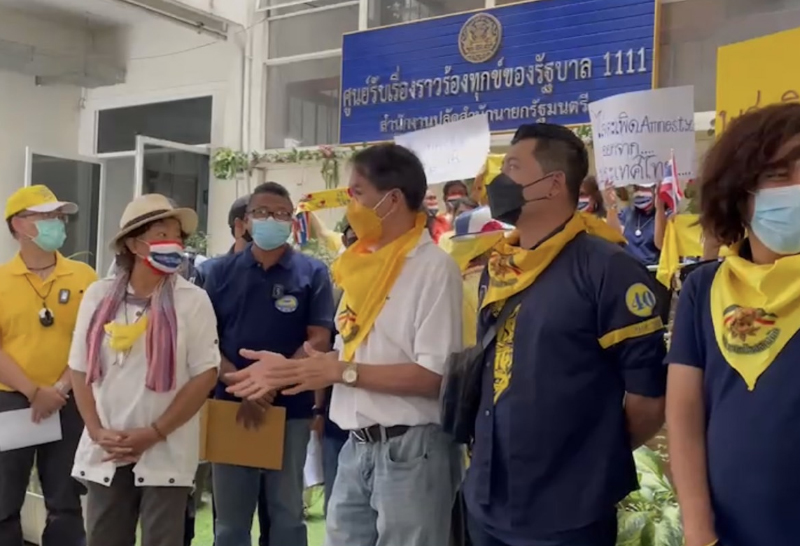 กลุ่มปกป้องสถาบันฯ กดดันรัฐบาลไล่แอมเนสตี้ พ้นประเทศ ฐานจาบจ้วง ล้มล้าง ขณะที่ ตร. เปิดทางโล่งหน้าทำเนียบชุมนุมสะดวก ต่างจากอีกฝ่ายจัดกิจจกรรม