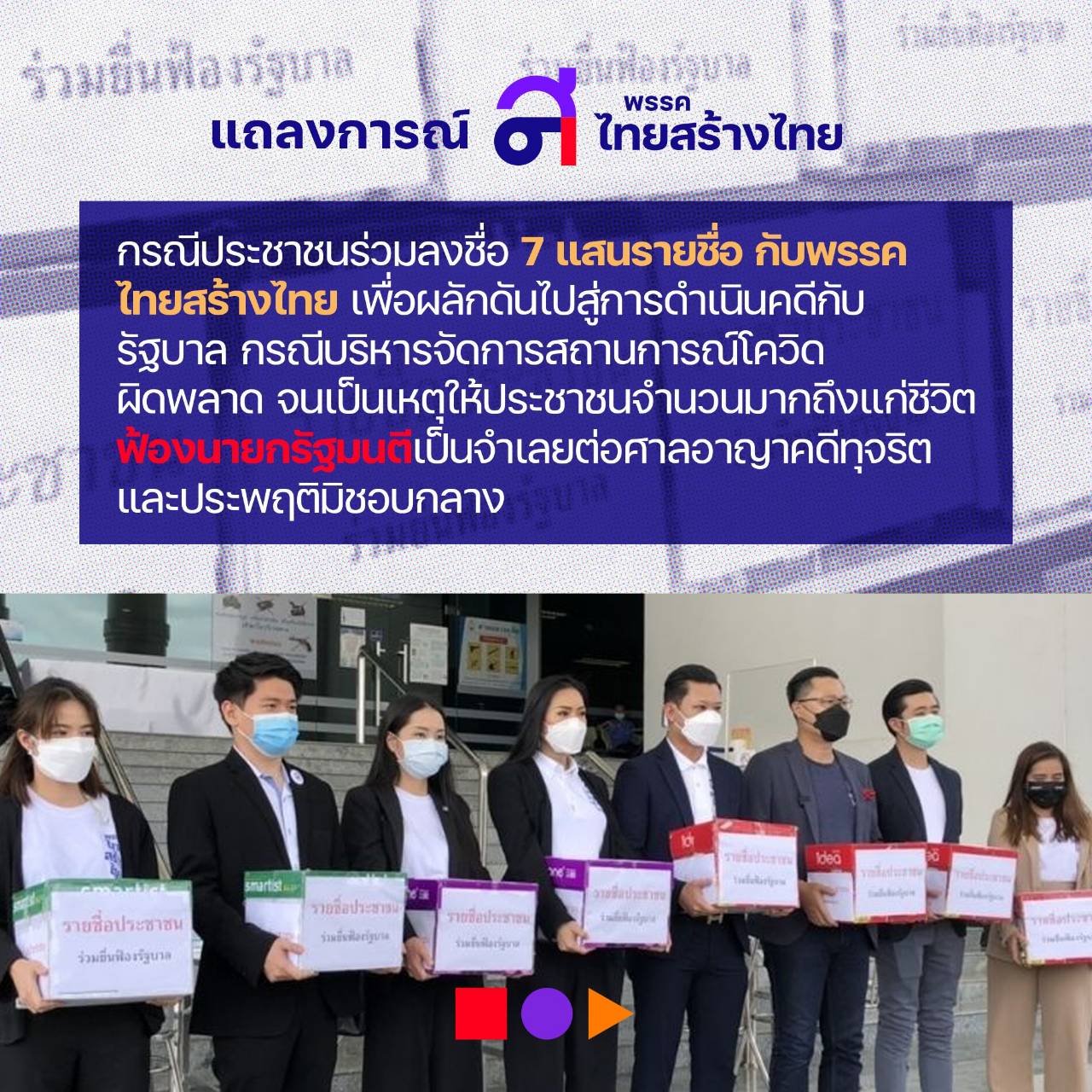 ดังนั้น พรรคไทยสร้างไทยไม่ท้อ แม้ศาลฯจะไม่รับฟ้อง และระบุว่าเป็นอำนาจของคณะกรรมการป้องกันและปราบปรามการทุจริตแห่งชาติ(ป.ป.ช.) ฉะนั้นจะนำ7แสนรายชื่อนี้ไปยื่นที่ป.ป.ช.อีกครั้งและจะทำหน้าที่ให้สุดกำลังเพื่อปกป้องผลประโยชน์ของประชาชน ที่มาร่วมยื่นฟ้องกับพรรคไทยสร้างไทย ซึ่งรัฐบาลต้องรับผิดชอบ