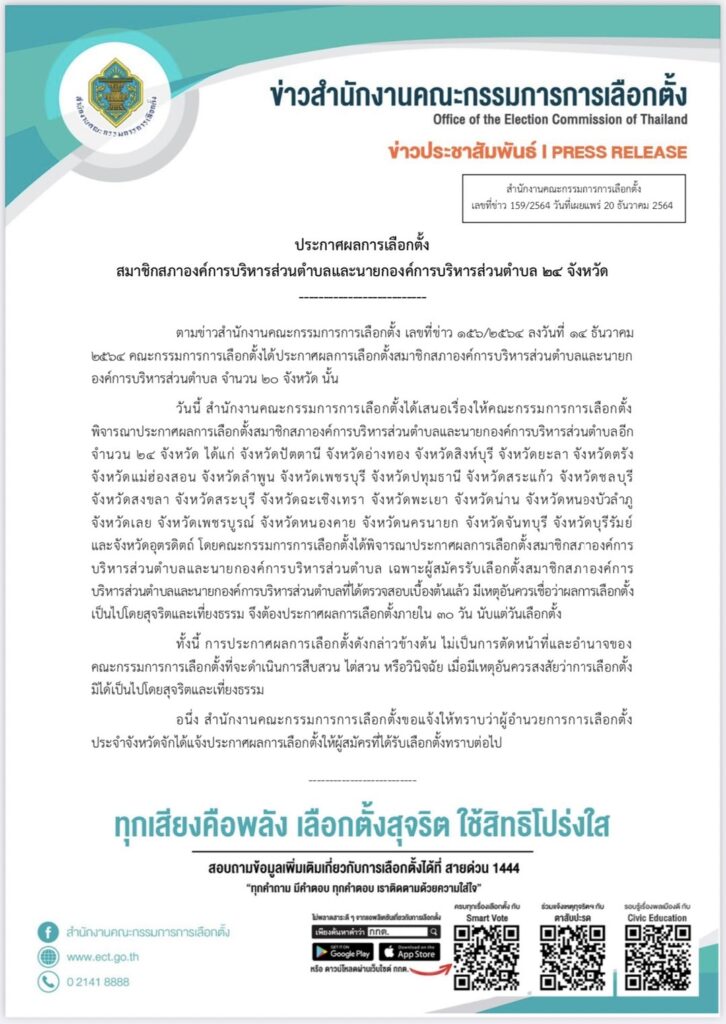กกต.กำหนดวันเลือกตั้งซ่อมส.ส.ชุมพร-สงขลา 16 ม.ค.65 พร้อมเปิดรับสมัครรับเลือกตั้ง 23-27 ธ.ค.64