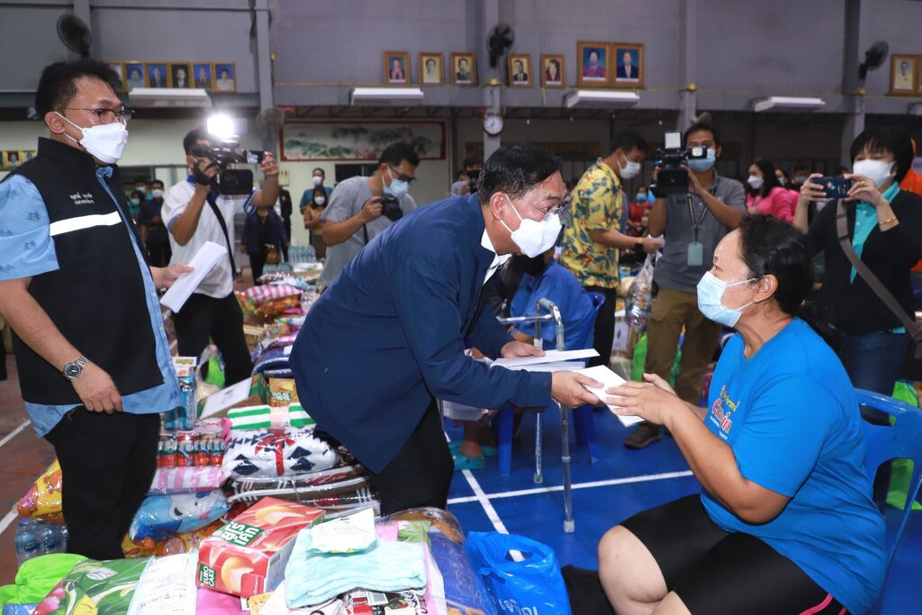 และนายอนุสรณ์ นาคาศัย นายกองค์การบริหารส่วนจังหวัดชัยนาท มอบเงินช่วยเหลือครอบครัวละ 3,000 บาท