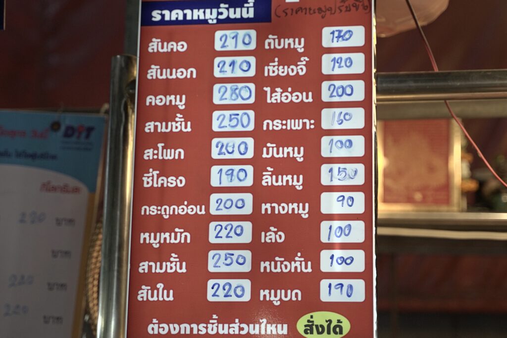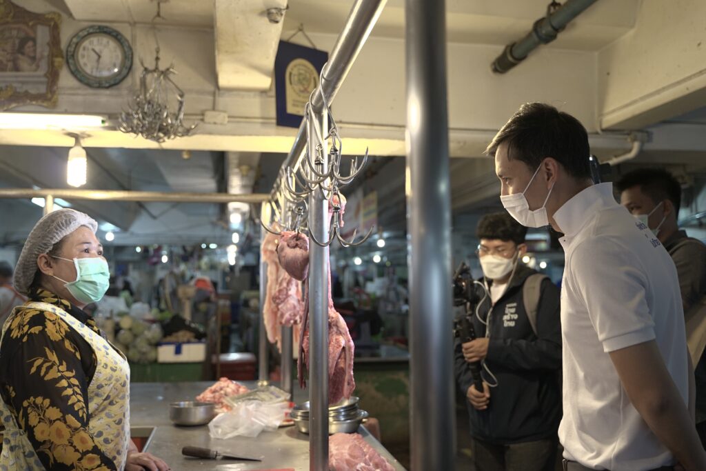 นายรณกาจ ชินสำราญ ว่าที่ผู้สมัคร ส.ส.กทม.พรรคไทยสร้างไทย กล่าวถึงการลงพื้นที่ สอบถามพ่อค้าแม่ขายในตลาด สำรวจผลกระทบหมูราคาแพง ว่าพบมีข้อมูลที่น่าสนใจ จากผู้ที่ได้รับความเดือดร้อน โดยกลุ่มแรกแม่ค้าเขียงหมู ราคาส่งจากตลาดใหญ่หรือฟาร์มมาสูง พ่อค้าแม่ค้าเขียงหมูรู้ว่าบวกกำไรมากลูกค้าก็จะไม่ซื้อ กำไรได้แค่กิโลละ 5-10 บาท ของแพงก็ขายได้น้อยลง และหลายคนบอกว่าลำบากมากยุคนี้ ข้าวของแพงไปหมด อัดอั้นใจมาก