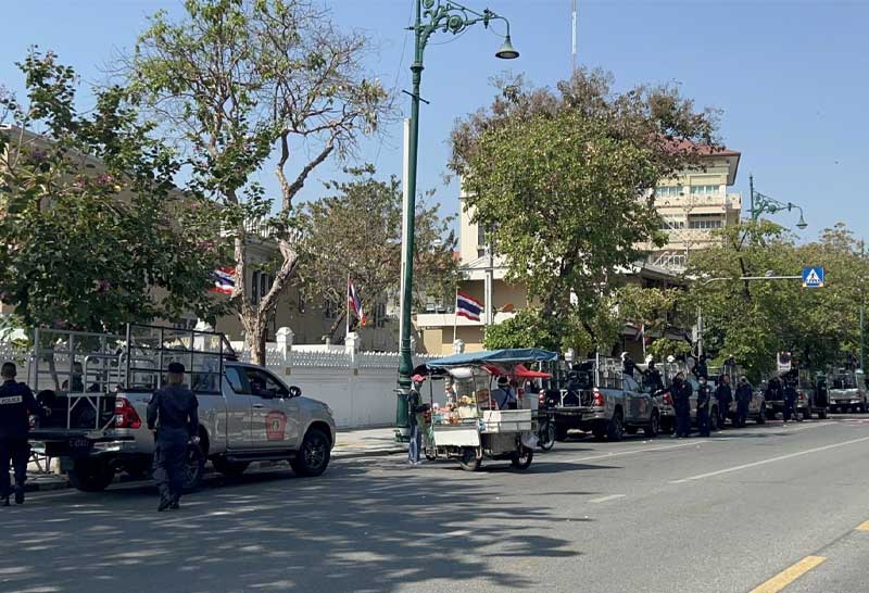 ขณะที่การรักษาความปลอดภัยบริเวณโดยรอบทำเนียบรัฐบาล มีการใช้กำลังเจ้าหน้าที่ตำรวจสันติบาล รวมไปถึงสนธิกำลังจากนครบาล ตรึงกำลังโดยรอบพื้นที่ โดยเจ้าหน้าที่ตำรวจ ได้ปิดประตูทางเข้าประตูหนึ่ง ซึ่งเป็นทางเข้าออกหลักของนายกรัฐมนตรี ซึ่งมีการนำรั้วเหล็กมาปิดบริเวณด้านหน้า