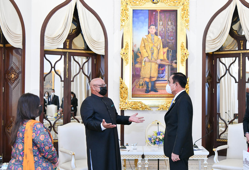 นายซาฮิบซาดา อาห์เมด คาน (H.E. Mr. Sahebzada Ahmed Khan) เอกอัครราชทูตสาธารณรัฐอิสลามปากีสถาน ประจำประเทศไทย เข้าเยี่ยมคารวะ พลเอก ประยุทธ์ จันทร์โอชา นายกรัฐมนตรีและรัฐมนตรีว่าการกระทรวงกลาโหม ในโอกาสเข้ารับหน้าที่ ซึ่งทั้งสองประเทศต่างมีความสัมพันธ์ทางการทูตมาอย่างยาวนานและถือเป็นวาระครบรอบ 70 ปี เมื่อปี 2564 ที่ผ่านมา พร้อมขอส่งความปรารถนาดีไปยังนายกรัฐมนตรีปากีสถาน เชื่อมั่นว่าจากประสบการณ์การทำงานที่ผ่านมาของเอกอัครราชทูตปากีสถานฯ จะช่วยส่งเสริมความสัมพันธ์ระหว่างกันให้แน่นแฟ้นยิ่งขึ้น แม้ในช่วงสถานการณ์โควิด-19 โดยไทยพร้อมดำเนินกิจกรรมอื่น ๆ ร่วมกับปากีสถานเพิ่มเติม เพื่อส่งเสริมความร่วมมือในทุกระดับต่อไป