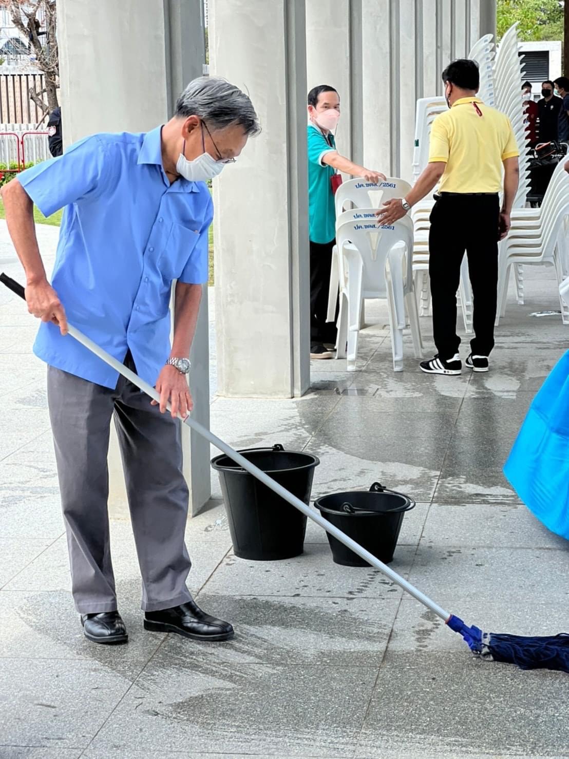 เพจตำรวจรัฐสภา เผย ภาพประธานชวน ติดดิน ออกแสดงเป็นแม่บ้านถูพื้นเตรียมงานสภา