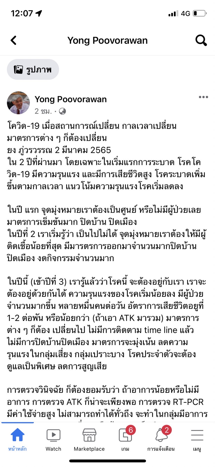 ศ.นพ.ยง ภู่วรวรรณ หัวหน้าศูนย์เชี่ยวชาญเฉพาะทางด้านไวรัสวิทยาคลินิก ภาควิชากุมารเวชศาสตร์ คณะแพทยศาสตร์ จุฬาลงกรณ์มหาวิทยาลัยโพสต์เฟซบุ๊ก โควิด-19 เมื่อสถานการณ์เปลี่ยน กาลเวลาเปลี่ยน มาตรการต่าง ๆ ก็ต้องเปลี่ยน (ยง ภู่วรวรรณ 2 มีนาคม 2565) ว่า ใน 2 ปีที่ผ่านมาโดยเฉพาะในเริ่มแรกการระบาด โรคโควิด-19 มีความรุนแรง และมีการเสียชีวิตสูง โรคระบาดเพิ่มขึ้นตามกาลเวลา แนวโน้มความรุนแรงโรคเริ่มลดลง