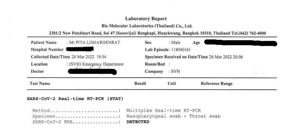 นายพิธา ลิ้มเจริญรัตน์ หัวหน้าพรรคก้าวไกล แจ้งข่าวการติดโควิดครั้งที่ 2 (Reinfection) ภายใน 1 เดือน ของตนเอง ว่า ตนได้มีอาการไม่สบายอีกครั้งหนึ่งและตรวจพบเชื้อโควิดผ่านชุดตรวจ ATK ผลเป็นบวกทั้งๆ ที่ไม่น่าเป็นไปได้ ตนจึงไปตรวจยืนยันผลอีกครั้งโดยการตรวจ PCR ก็พบว่าติดเชื้อโควิดอีกครั้งหนึ่งโดยมีค่า CT อยู่ที่ 19 ซึ่งแพทย์ระบุว่าหมายถึงปริมาณเชื้อมาก วินิจฉัยว่าเป็นการติดโควิด อีกครั้งหนึ่ง ไม่ใช่ซากเชื้อจากการเป็นโควิดครั้งก่อน